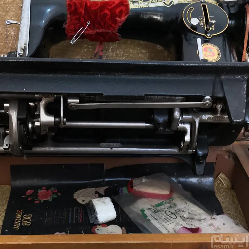 چرخ خیاطی سینگر اصل تمیز تمام لوازم ها فابریک ساخت بریتانیا انگلیس از اول دست خودمون بوده برای بیش از 80 سال پیش فقط درپوشش خراب شده فوق العاده آنتیک خاص سالم