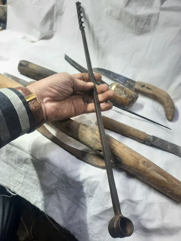یک عدد مته دست ساز بزرگ با طول 56 سانتی متر که انتهای آن یه سوراخ داره که در قدیم یه میله داخلش قرار میدادن و با چرخاندن با دست سوراخ کارهای بزرگ رو انجام میدادن.