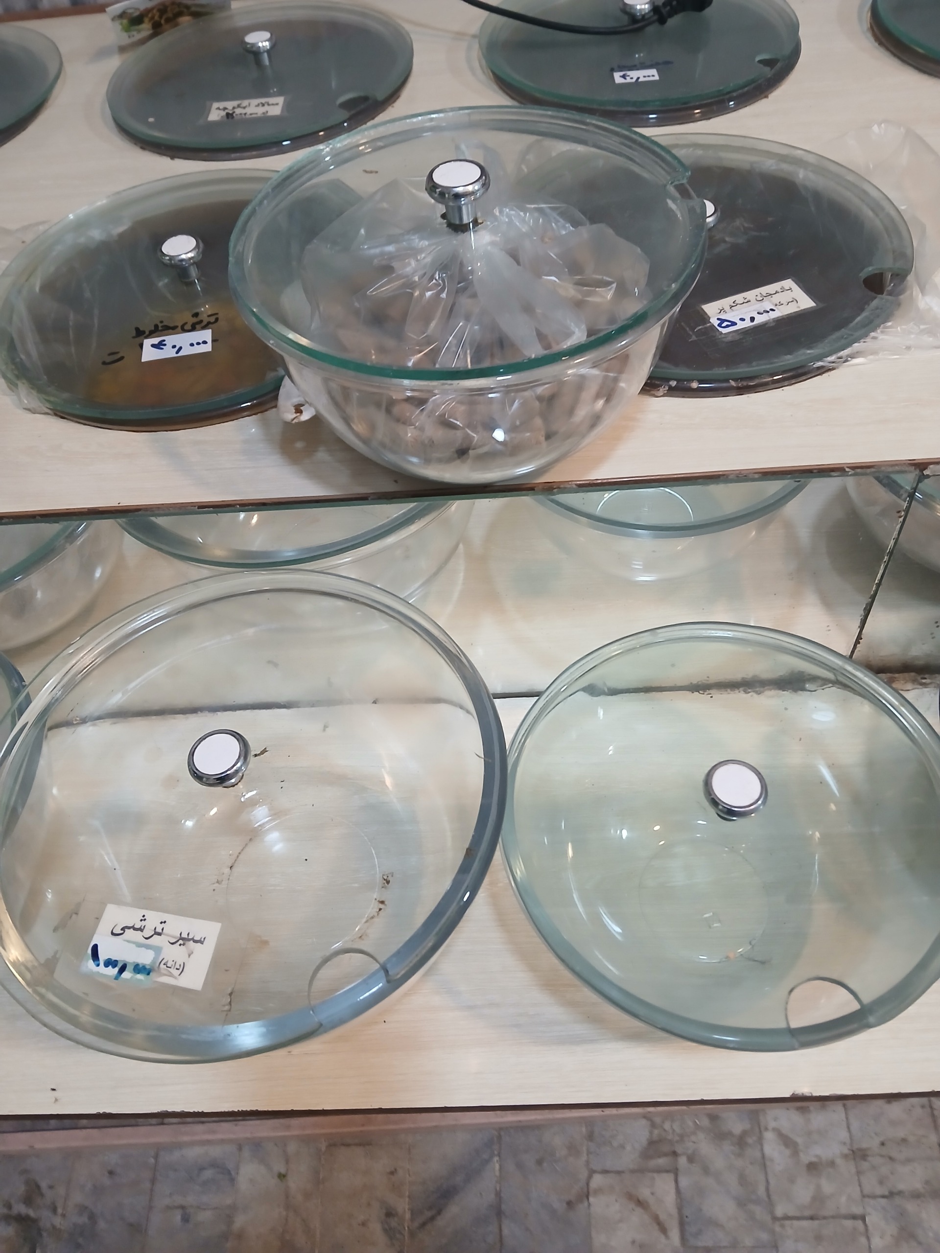 سلام .میز ترشی همراه با ام دی اف و 10عدد ظرف شیشه ای بزرگ با درب و 6عدد ظرف شیشه ای کوچک بدون درب .بسیار محکم و شیک