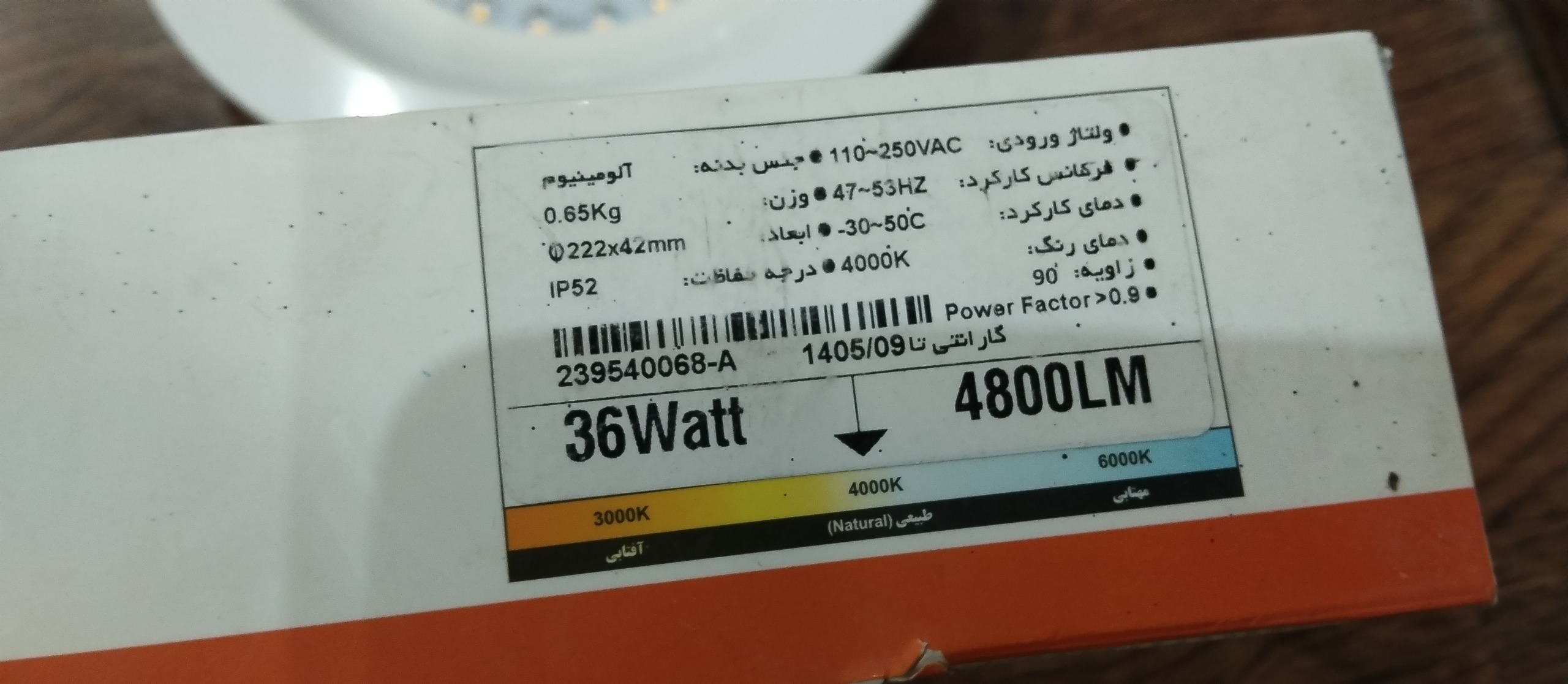 چراغ سقفی توکار 36وات ،قطر20برند آلتون مدل نورا با نور طبیعی بفروش می رسد