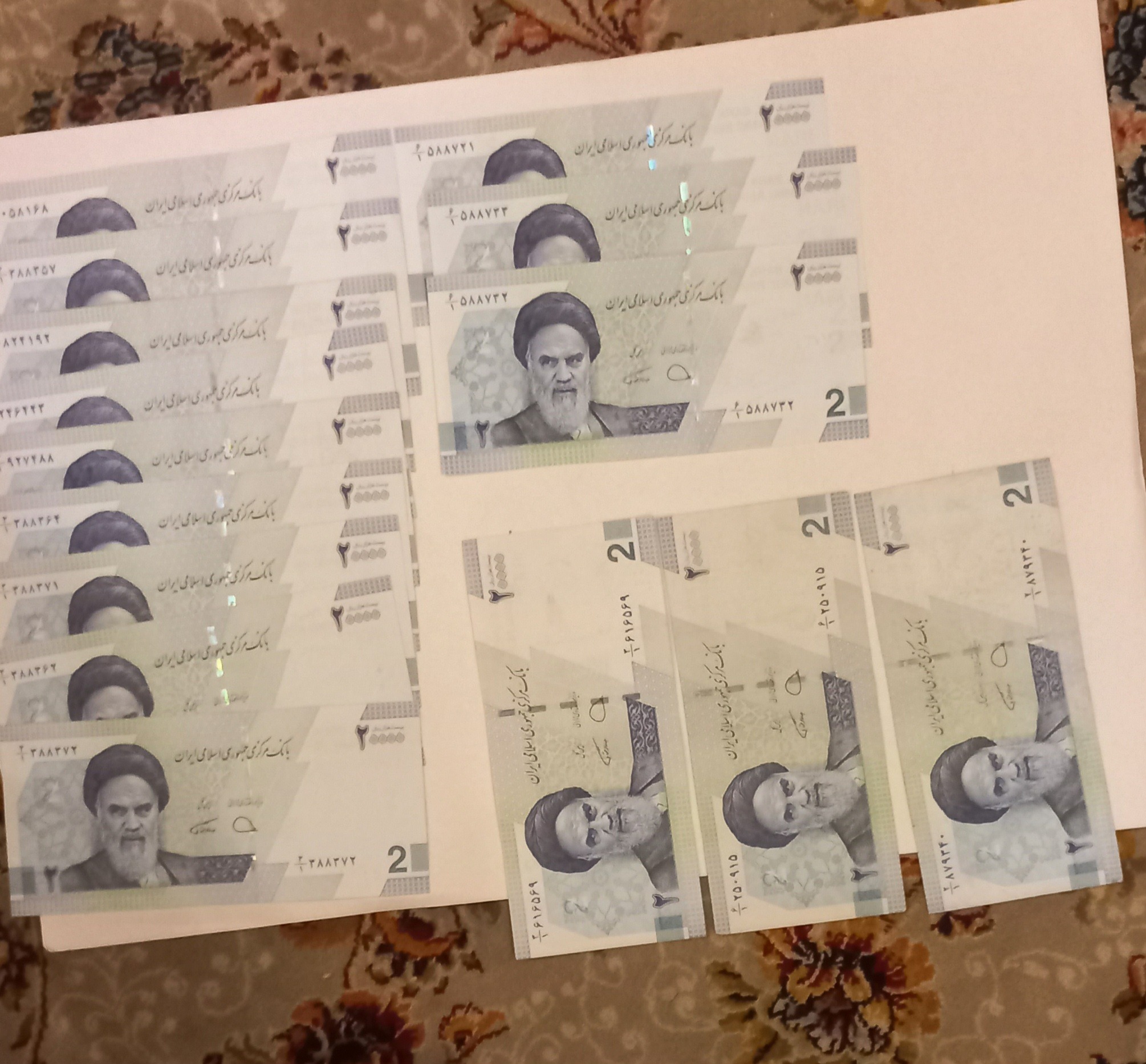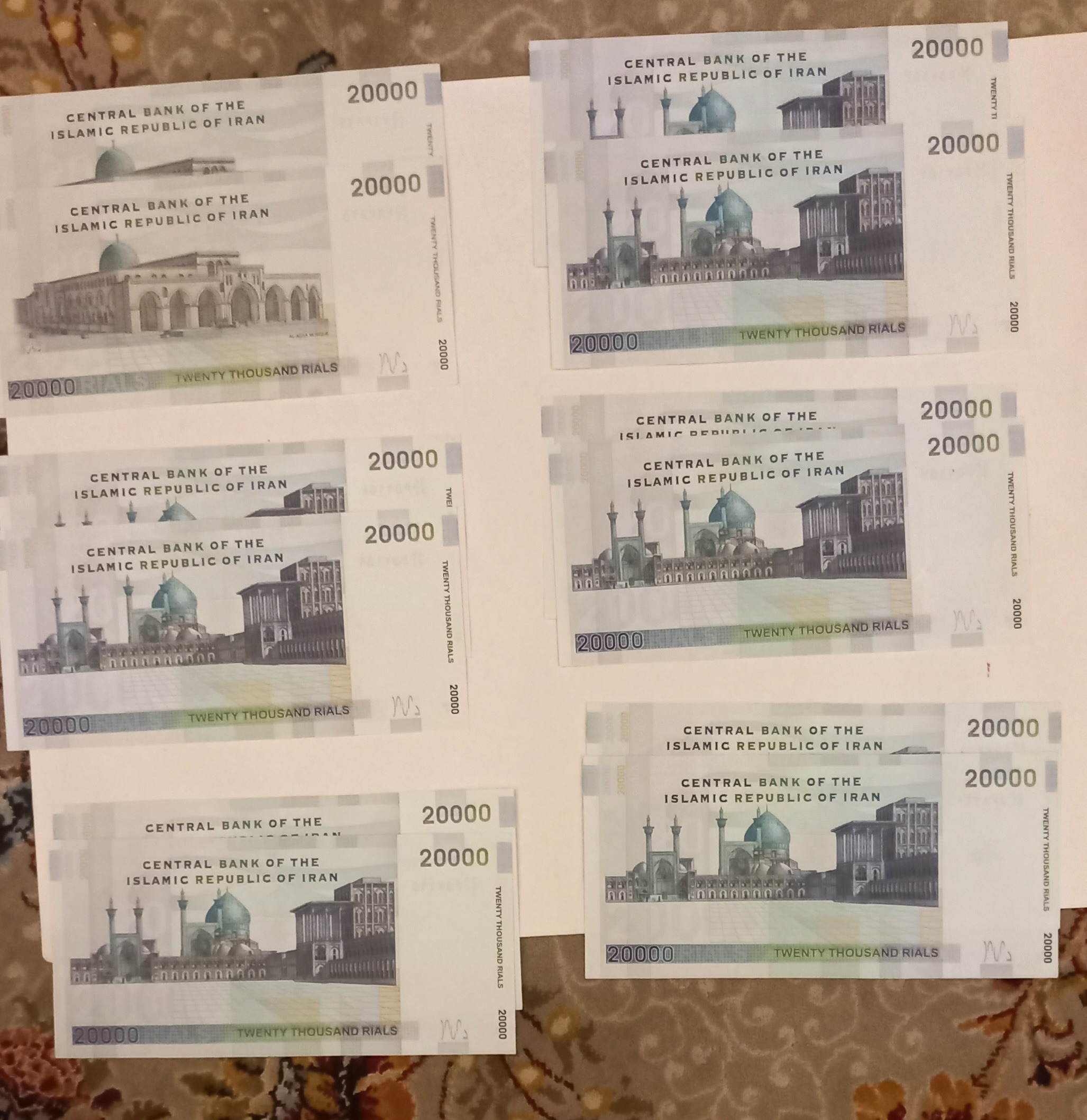 هفتاد پنج عدد اسکناس دو هزار تومانی که شامل پانزده عدد دو هزار تومانی جدید که دوازده عدد آن کیفیت بانکی میباشد و سه عدد معمولی کیفیت مطابق عکس پنج عدد دو هزار تومانی مسجد الاقصی دو عدد کیفیت بانکی سه عدد مطابق عکس چهار جفت اسکناس که یک جفت آن مسجد الاقصی و سه جفت دیگر آن نقش جهان دو جفت هم نقش جهان با فاصله و چهل و سه عدد دو هزار تومانی نقش جهان که سی چند عدد آن کیفیت بانکی میباشد دوستان عکس بیشتر و توضیحات بیشتر داده میشود