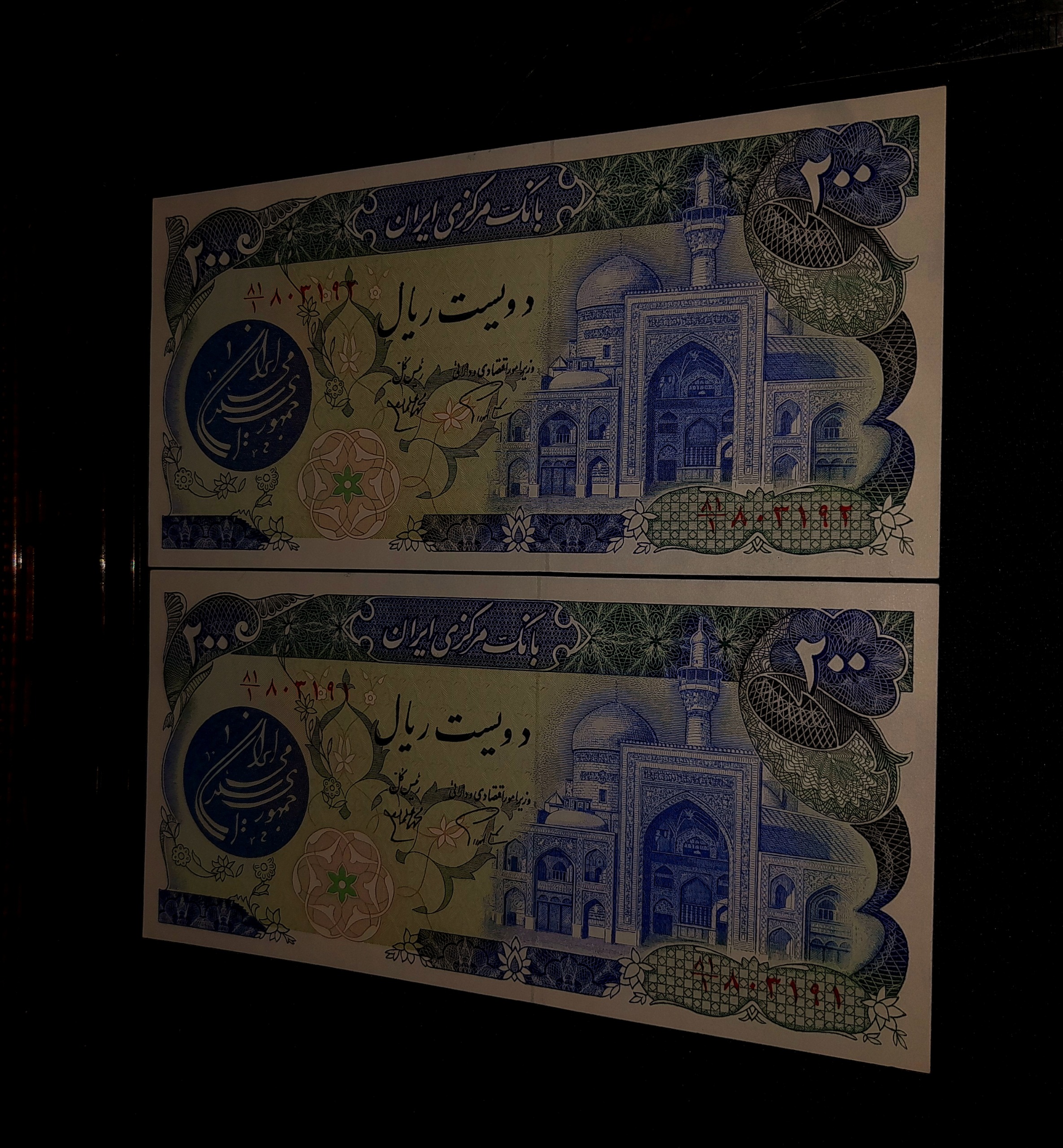 اسکناس جفت سریال پُشت هم با کیفیت سوپربانکی بدون ایراد و شکستگی زیر نور هم تصاویر گرفته شده است.