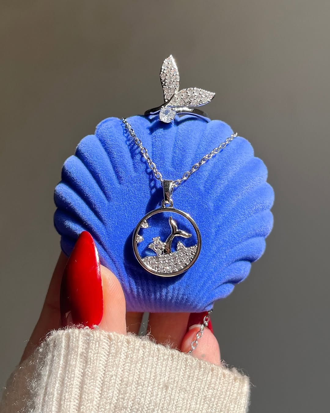 انگشتر و گردنبند دم وال و جاانگشتری صدف یکی از خاص