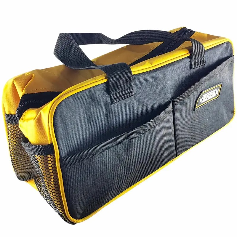 قبل از خرید کیف ابزار کنزاکس مدل KTB-140 بهتر است بدانید که تعداد جیب ها 7 عدد بوده که در کنار زیپ درشت بکار رفته ترکیبی فوق العاده برای نگه داری ابزارها خواهد بود. کیف ابزار 16 اینچ ktb-140 وسیله ای تمام عیار برای نگهدای اقلام مورد نیاز شما خواهد بود که در سایز مناسب (40سانتی متر) عرضه گردیده است و بسیاری از اقلام مورد نیازتان را نگهداری خواهد کرد. در رنگ بندی محصول از دو رنگ مشکی و زرد استفاده شده است که زیبایی محصول را هرچه تمام تر کرده است پس در خرید این محصول تردید نکنید.
