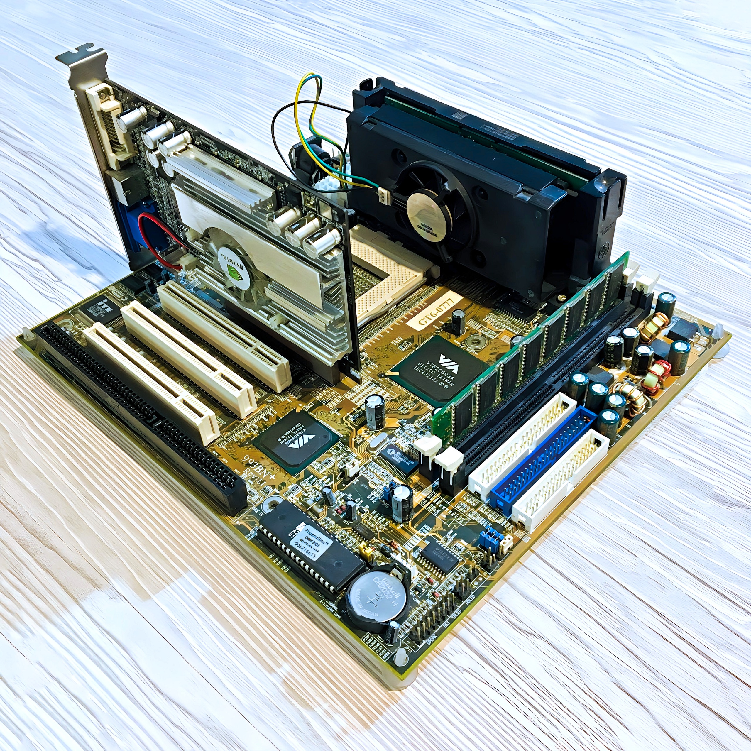 با سی پی یو اینتل پنتیوم 3 (تری) سرعت پردازنده فرکانس 800 مگاهرتز با یک عدد رم SD دو شیار و کارت گرافیک Geforce Fx 5500 128MB DDR AGP 8x