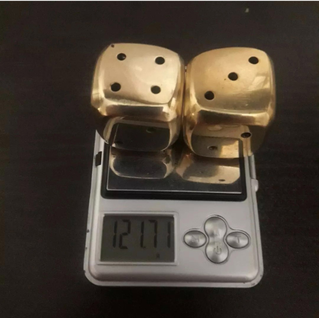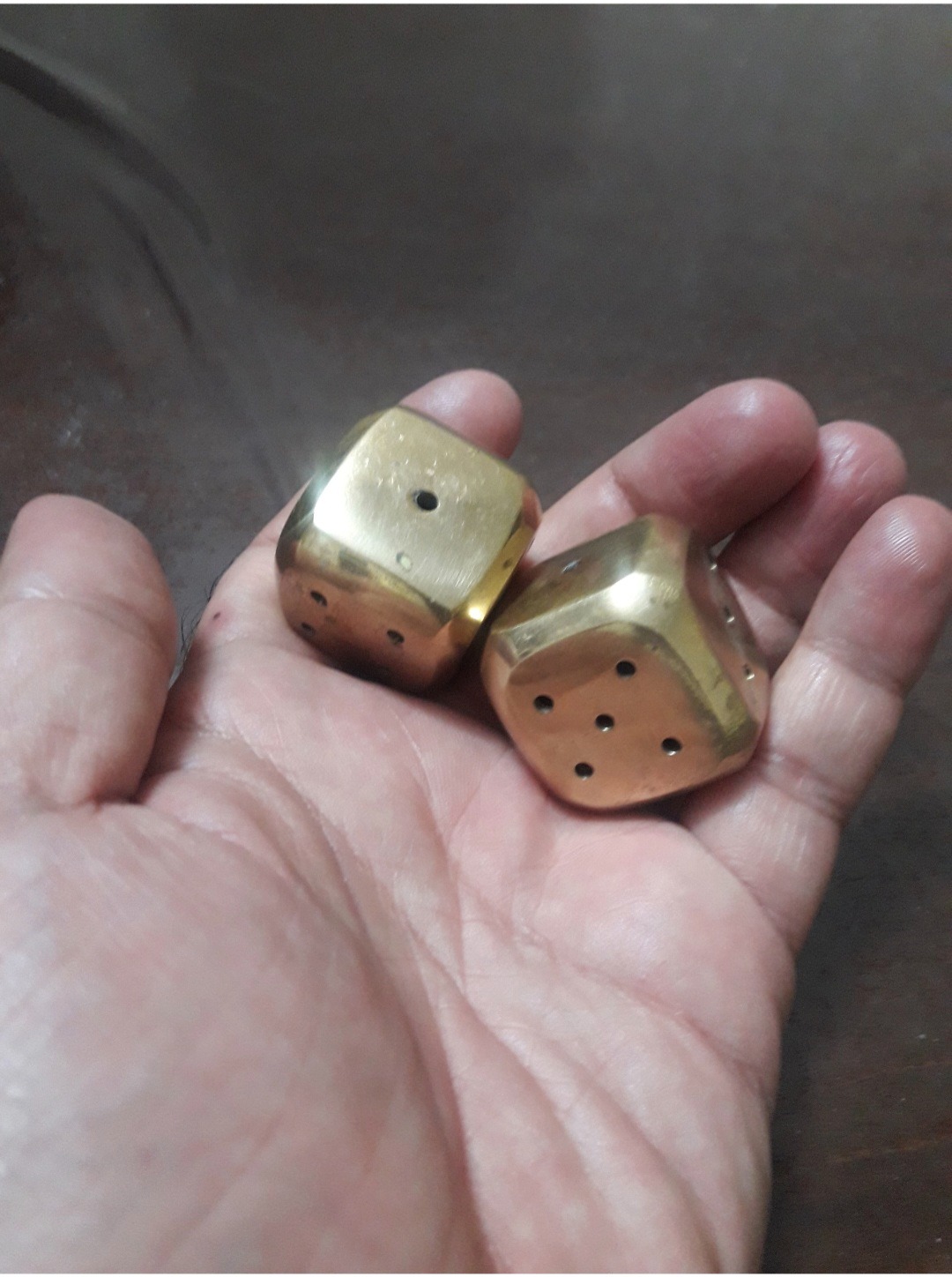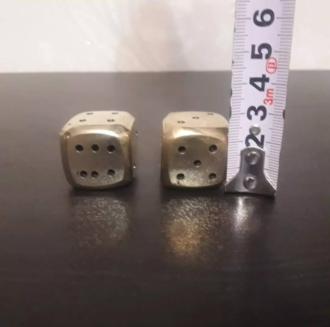 یک جفت تاس خارجی قدیمی بازی از جنس برنز یا برنجی فروش یکجا قیمت برای جفت تاس ها هست وزنگ جفتش 120 گرم