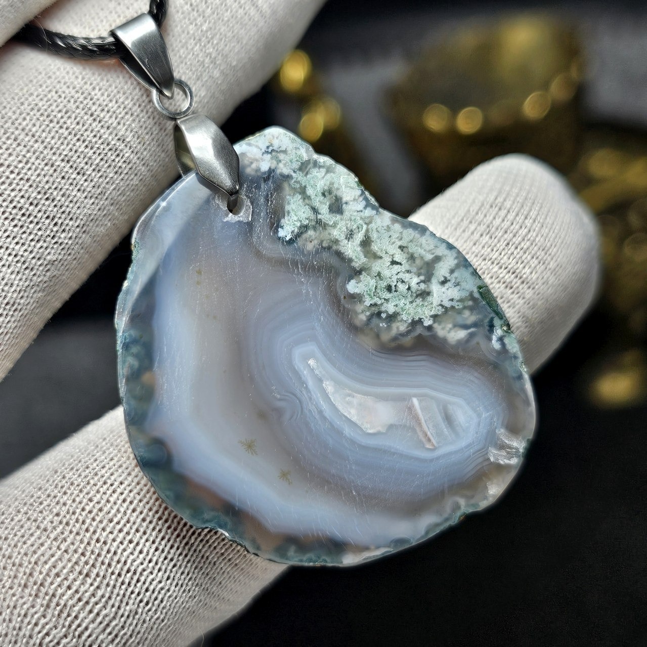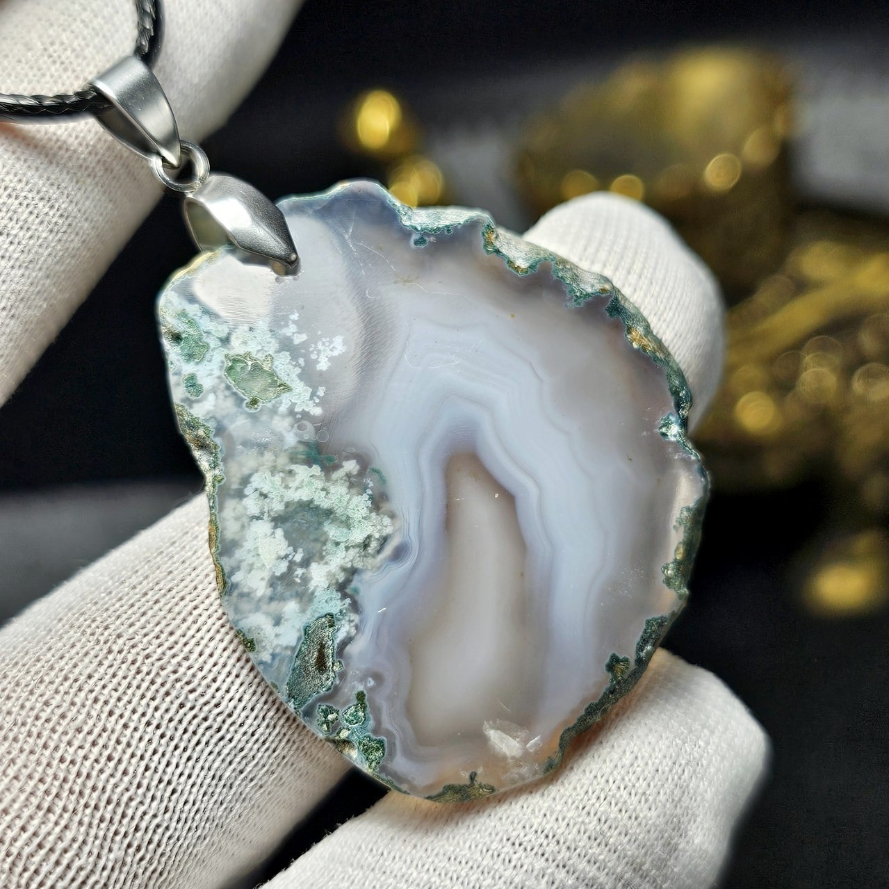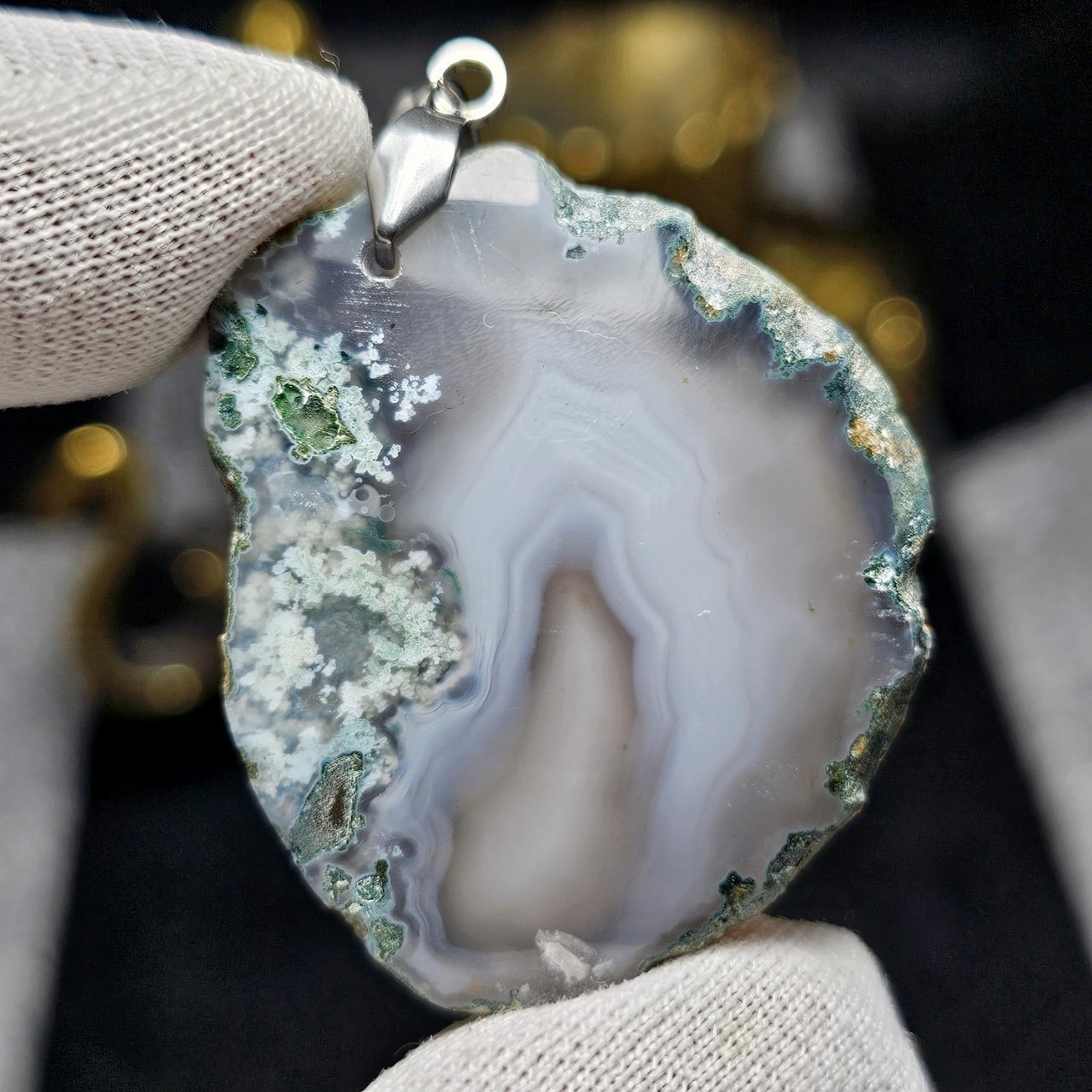 آویز گردنبند اسلایس سنگ طبیعی عقیق سلیمانی شجر معدنی خراسانی کد 34147
