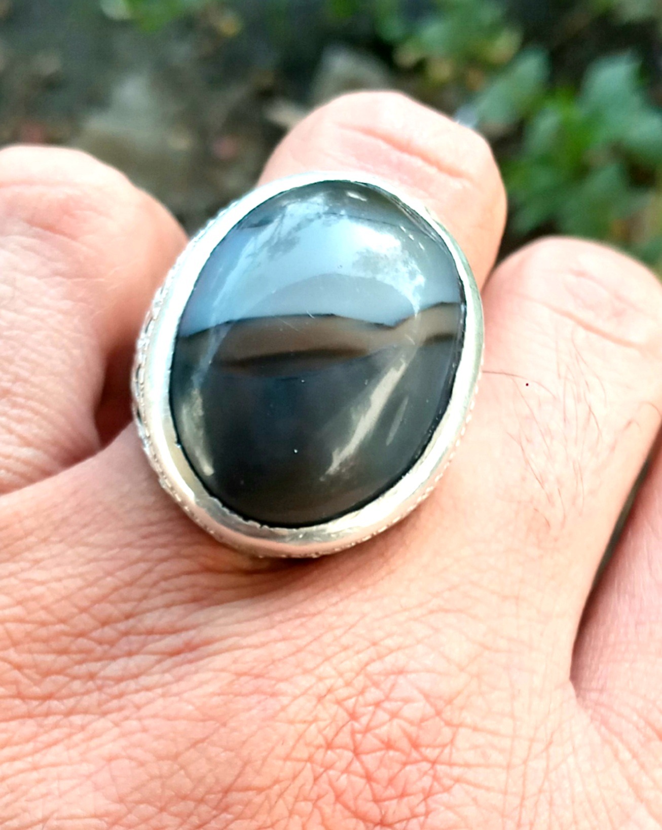 انگشتر جزع اصل صد در صد یمنی سنگ کاملا طبیعی و معدنی خوشرنگ و خاص و نایاب با رکاب تمام نقره عیار بالا و تمام دستساز درشت و سنگین وزن و خوشدست