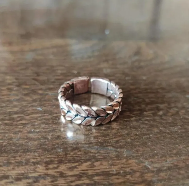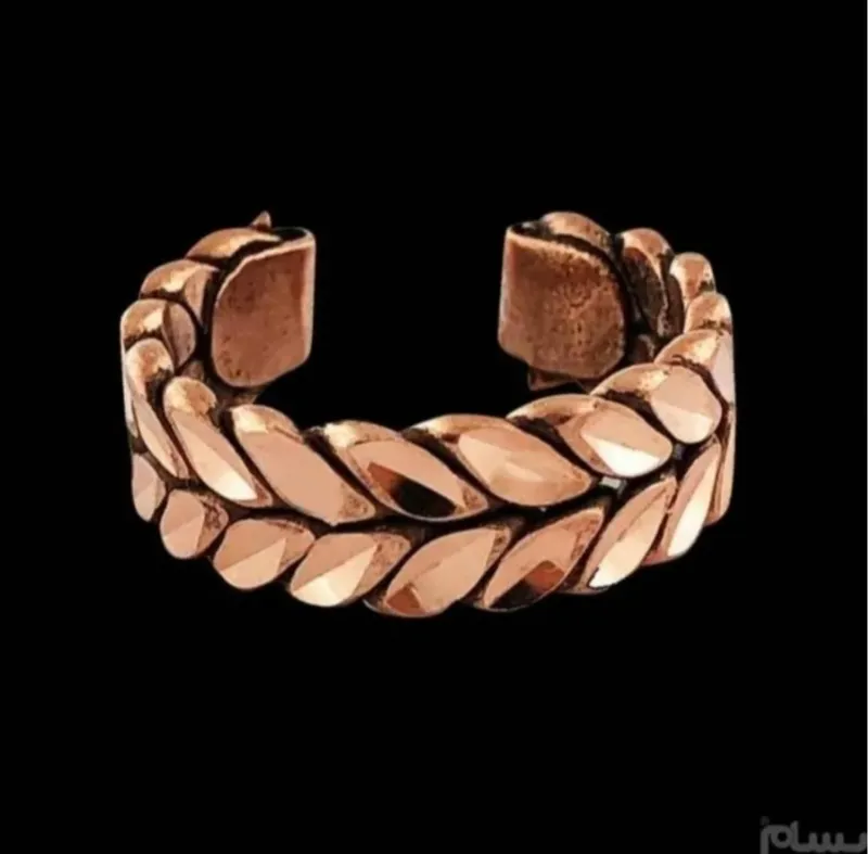 انگشتر مسی مدل سیاه قلم شده تمام تراش،فری سایز