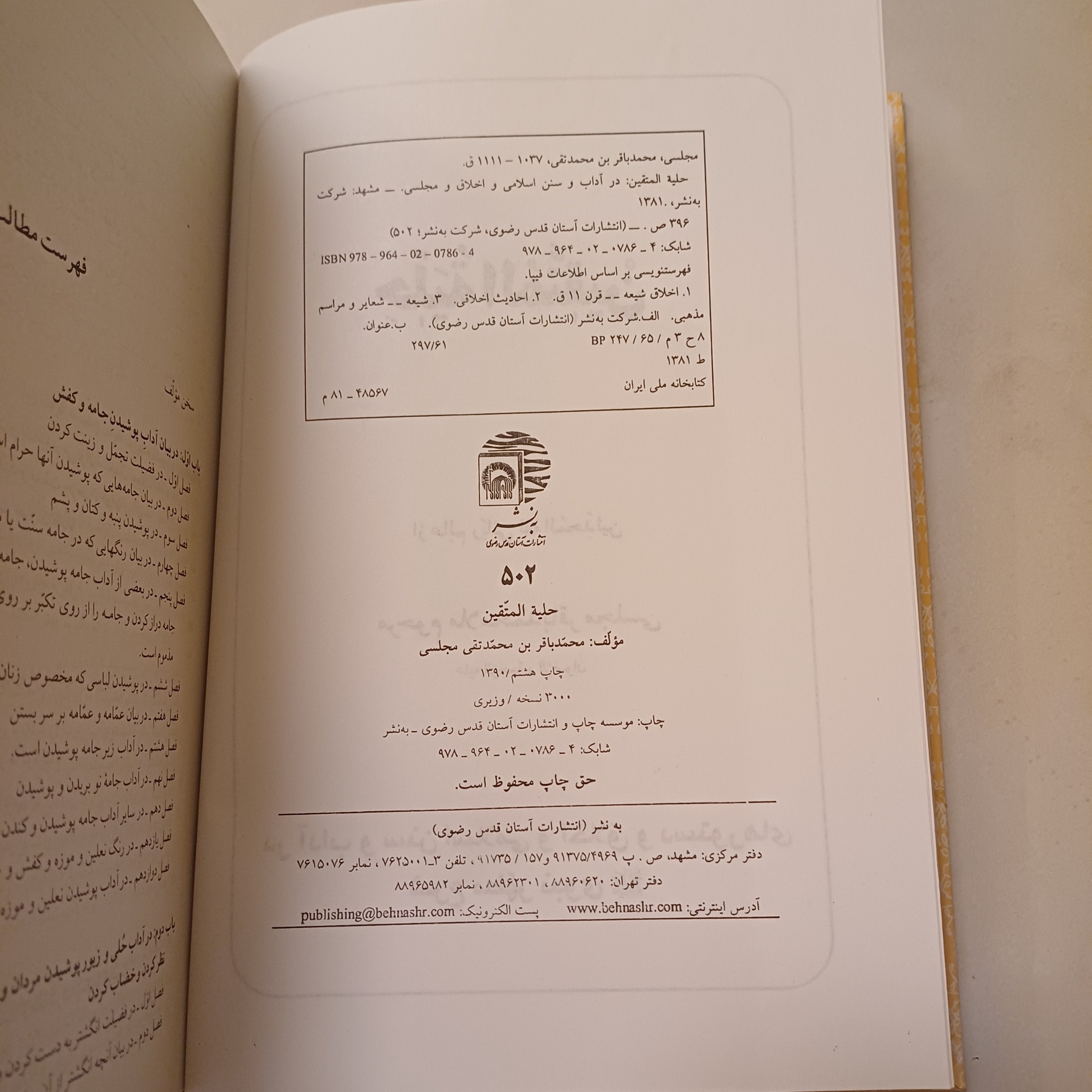 حلیة المتقین از علامه محمد باقربن محمد تقی مجلسی