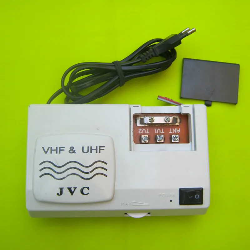 تقویت کننده و منبع تغذیه آنتن تلویزیون با مارک جی وی سی یک تقویت کننده فرکانس است . که فر کانس UHF و VHF را از آنتن به تلویزیون انتقال می دهد و کیفیت تصویر را چندین برابر افزایش می دهد .