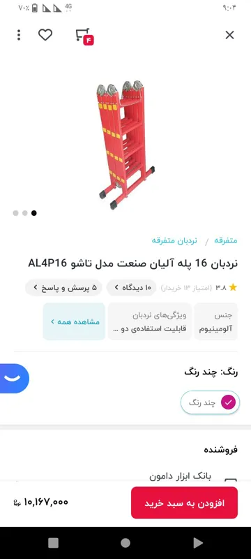 این نردبان رو از دیجیکالا خریدم برای شروع کاری اما انجام نشد و تصمیم گرفتم نردبون رو بفروشم،اصلا استفاده نشده،
