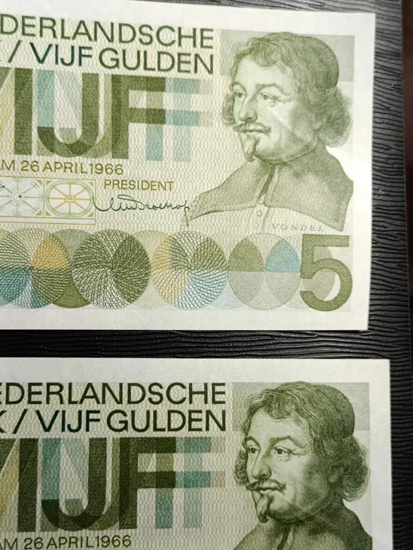 جفت اسکناس 5 گیلدر هلند 1966 سری اول