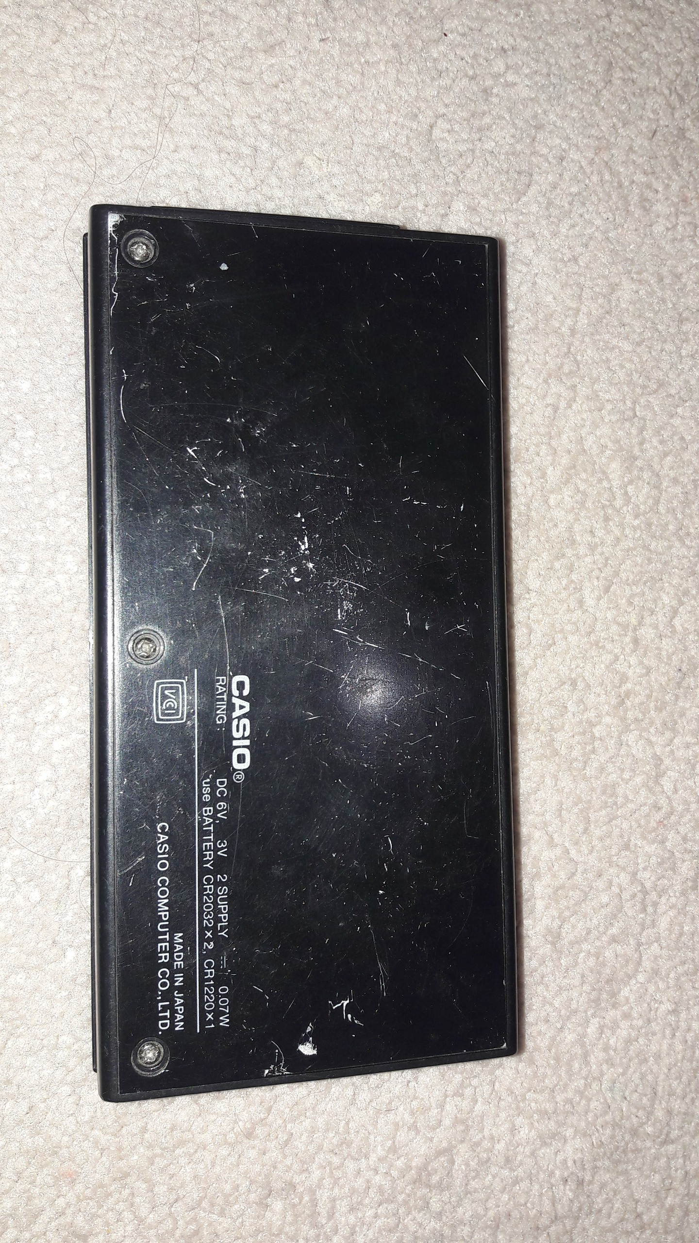 ماشین حساب مهندسی وکامپیوتر جیبی کاسیو.اصل ژاپن بدون دستخوردگی وتعمیر.تست نشده .کارکرد با سه عدد باتری سکه ای در دوسایز مختلف که پشت درب دستگاه نوشته.قابلیت نصب چاپگر