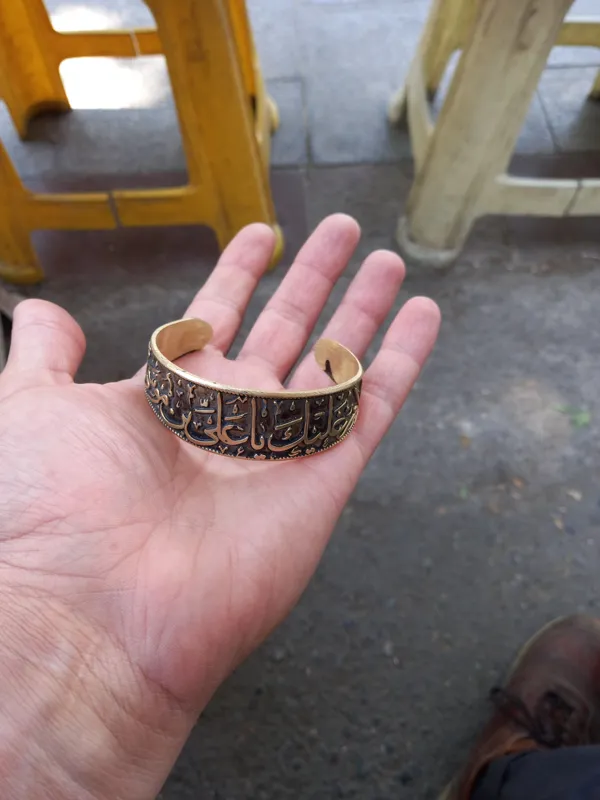 دستبند برنجی نقش السلام علیک یا علی بن موسی الرضا