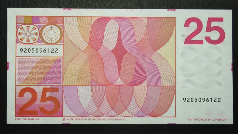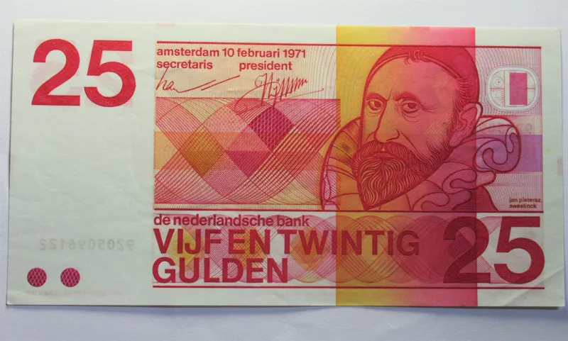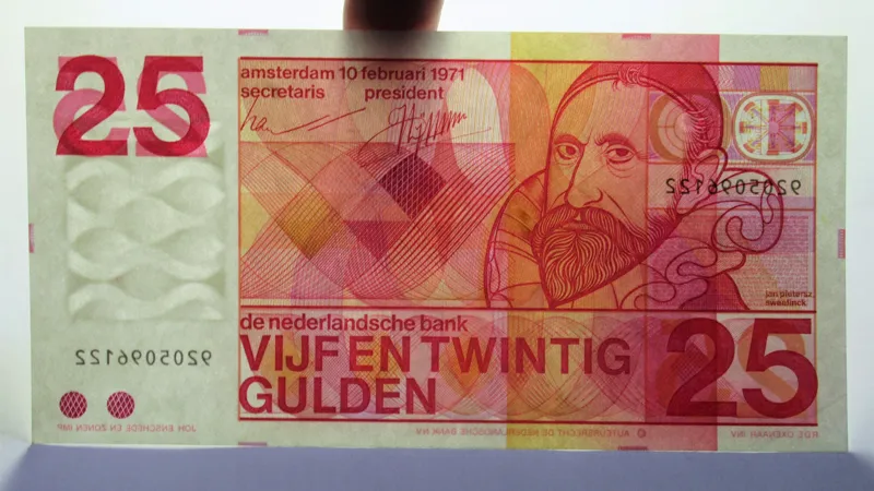 اسکناس 25 گیلدر هلند 1971 در حد بانکی