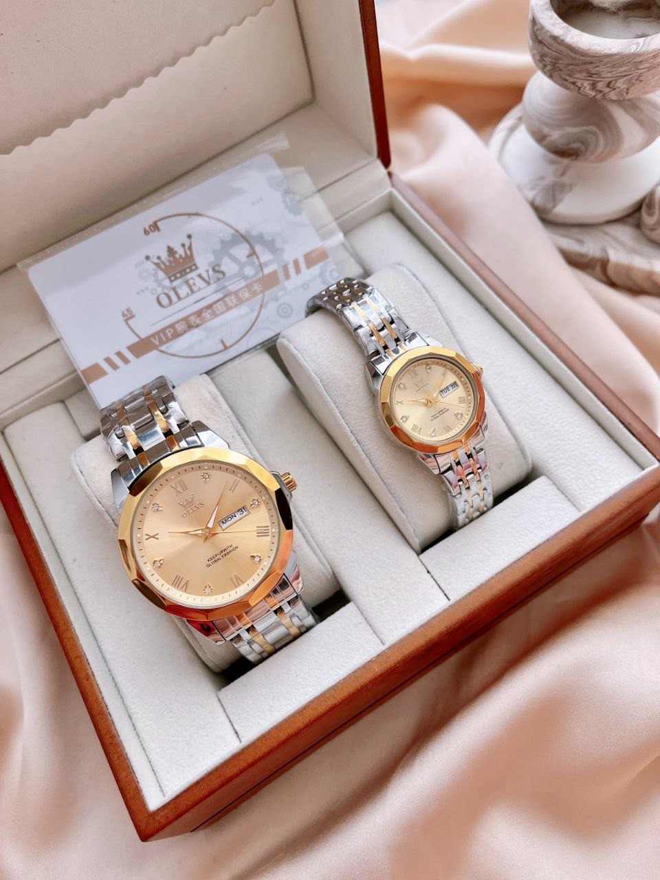 ست ساعت مچی دوتقویم بند استیل رنگ ثابت اولوز