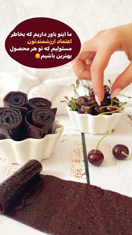 لواشک آلبالو بافتی نرم داره کاملا خونگی درست شده بدون کوچکترین افزودنی انقد طبیعی انگار داری خود آلبالورو میخوری
