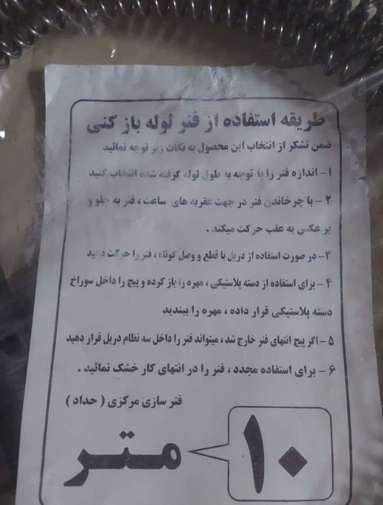 فنر لوله بازکنی خانگی 10 متری حداد