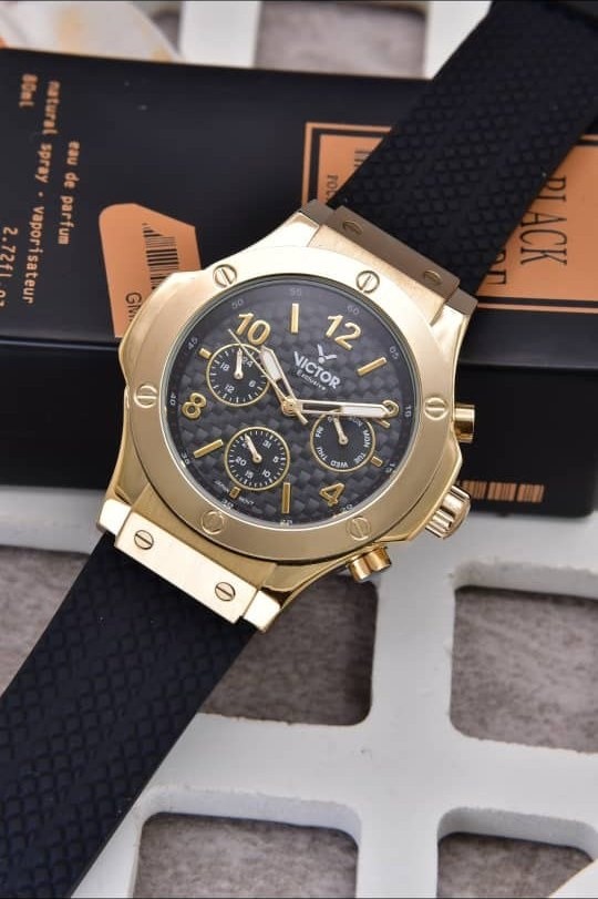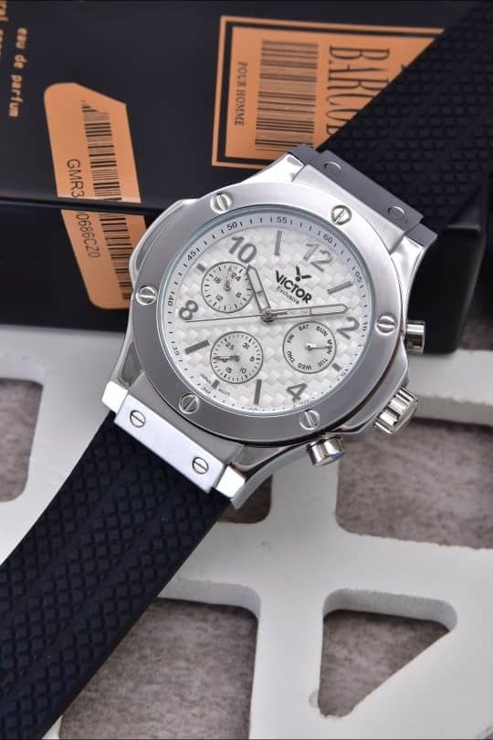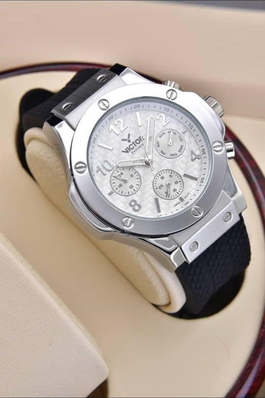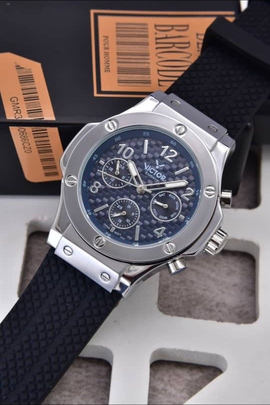 ساعت ویکتور مردانه اورجینال طرح هابلوت سه موتوره کرنوگراف فعال همراه با جعبه چوبی