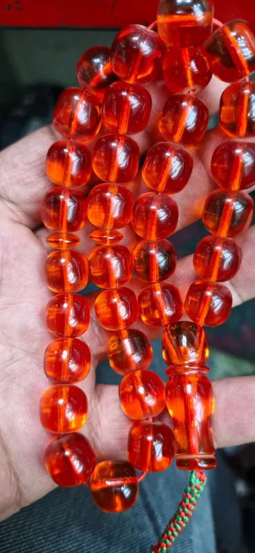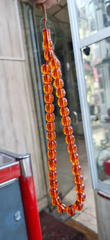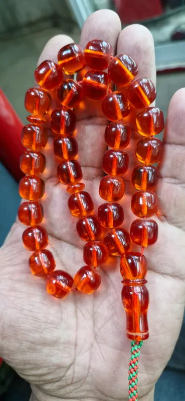 تسبیح سندلوس سی و سه دانه شمش رنگ نارنجی به وزن پنجاه گرم بدون عیب تراش دست سایز کارمندی