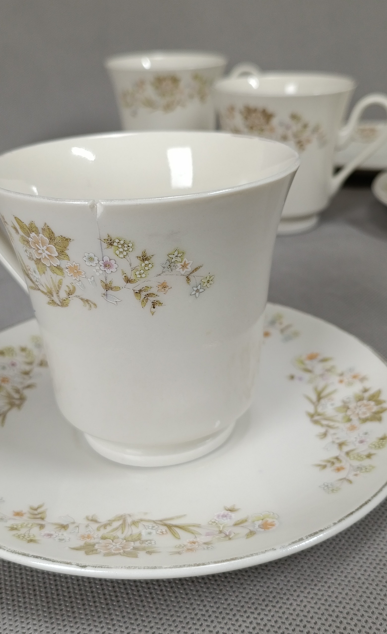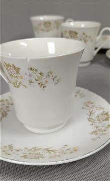 سرویس چای خوری چینی 6 نفره آنتیک و قدیمی (یکی از فنجانها ترک داره عکسشو گزاشتم ) قد فنجان ها 8٫5 سانت قطر نعلبکی 15٫5 سانت