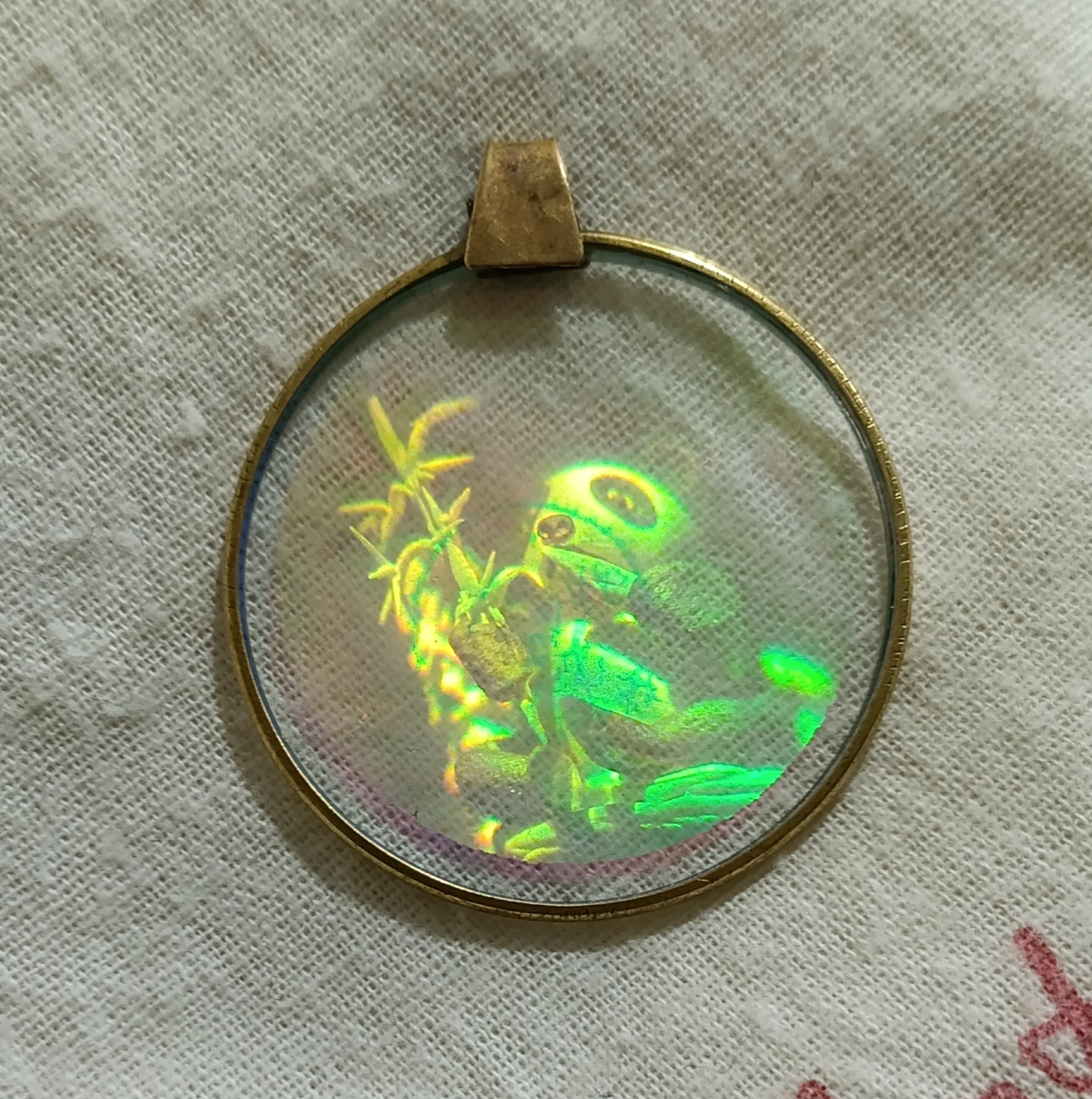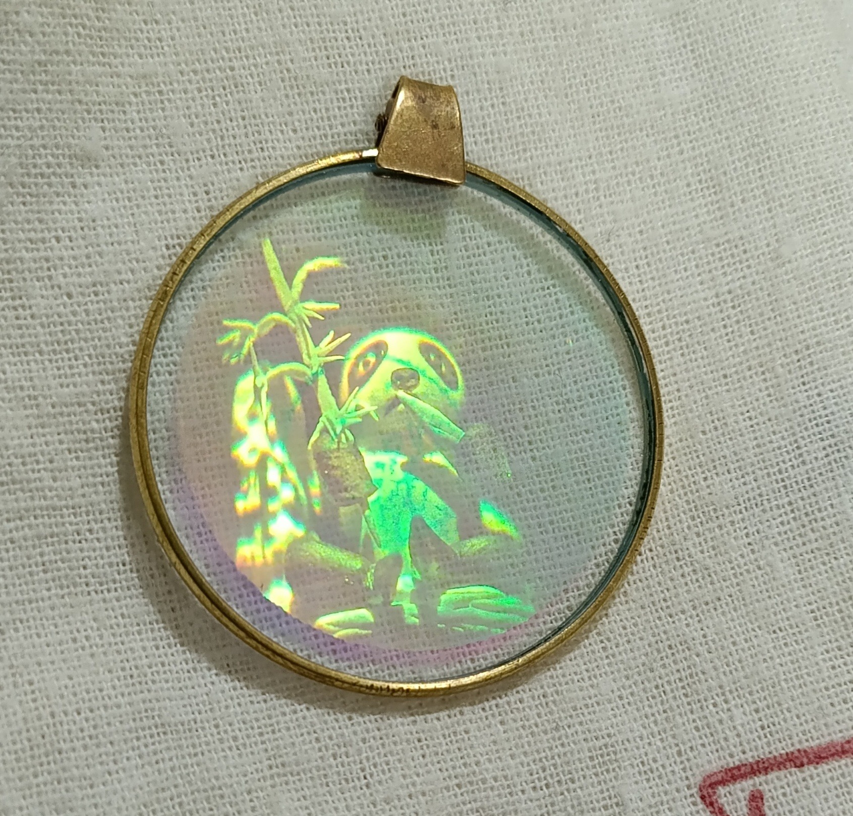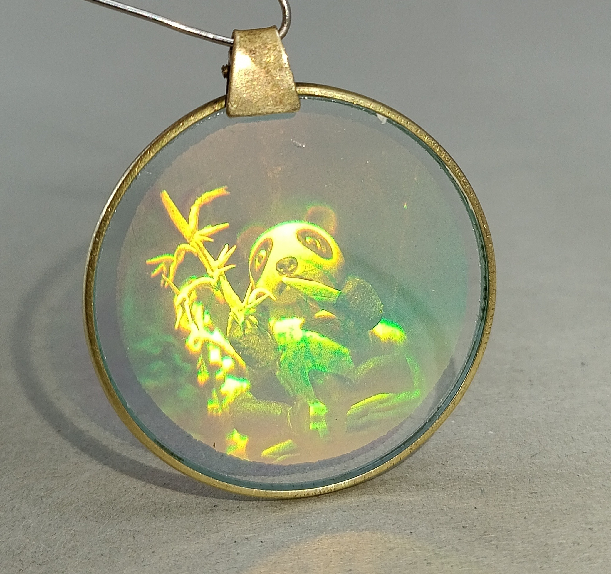 آویز گردنی قدیمی و کمیاب نماد پاندا سه بعدی با قاب برنجی قطر 3٫5 سانت