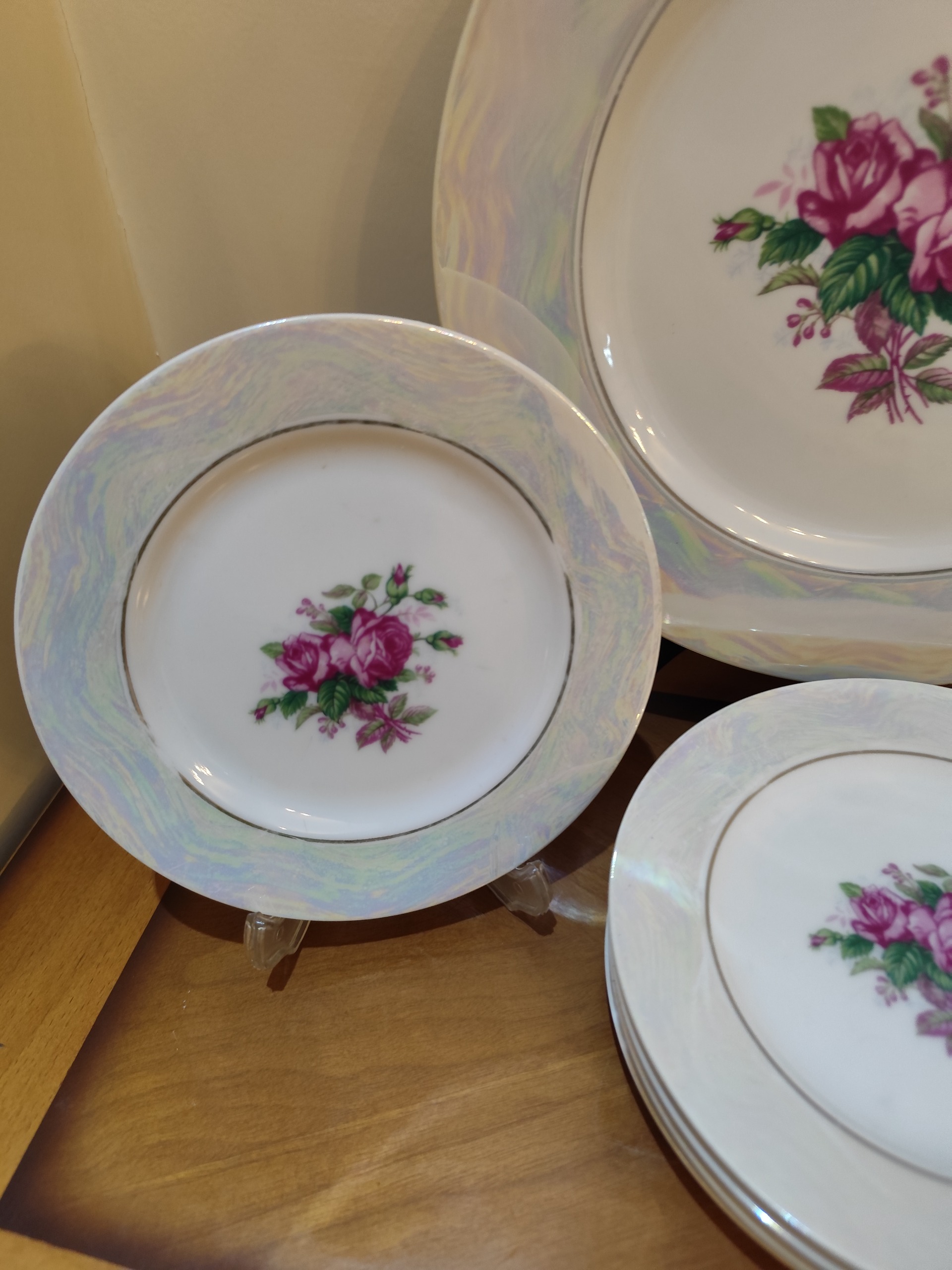 7پارچه قدمت دار ژاپن دور مرمری هفت رنگ بسیار زیبا دو تا خال کارخانه ای داخل بشقاب داره