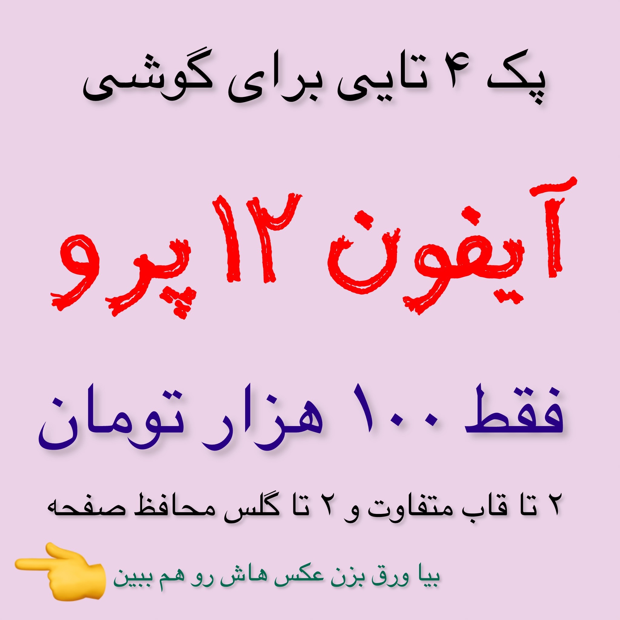 عزیزان همراه یک پک 4 تایی خدمتتون تقدیم می شود برای گوشی آیفون 12 پرو (iphone12 pro) محتویات این پک عبارتند از