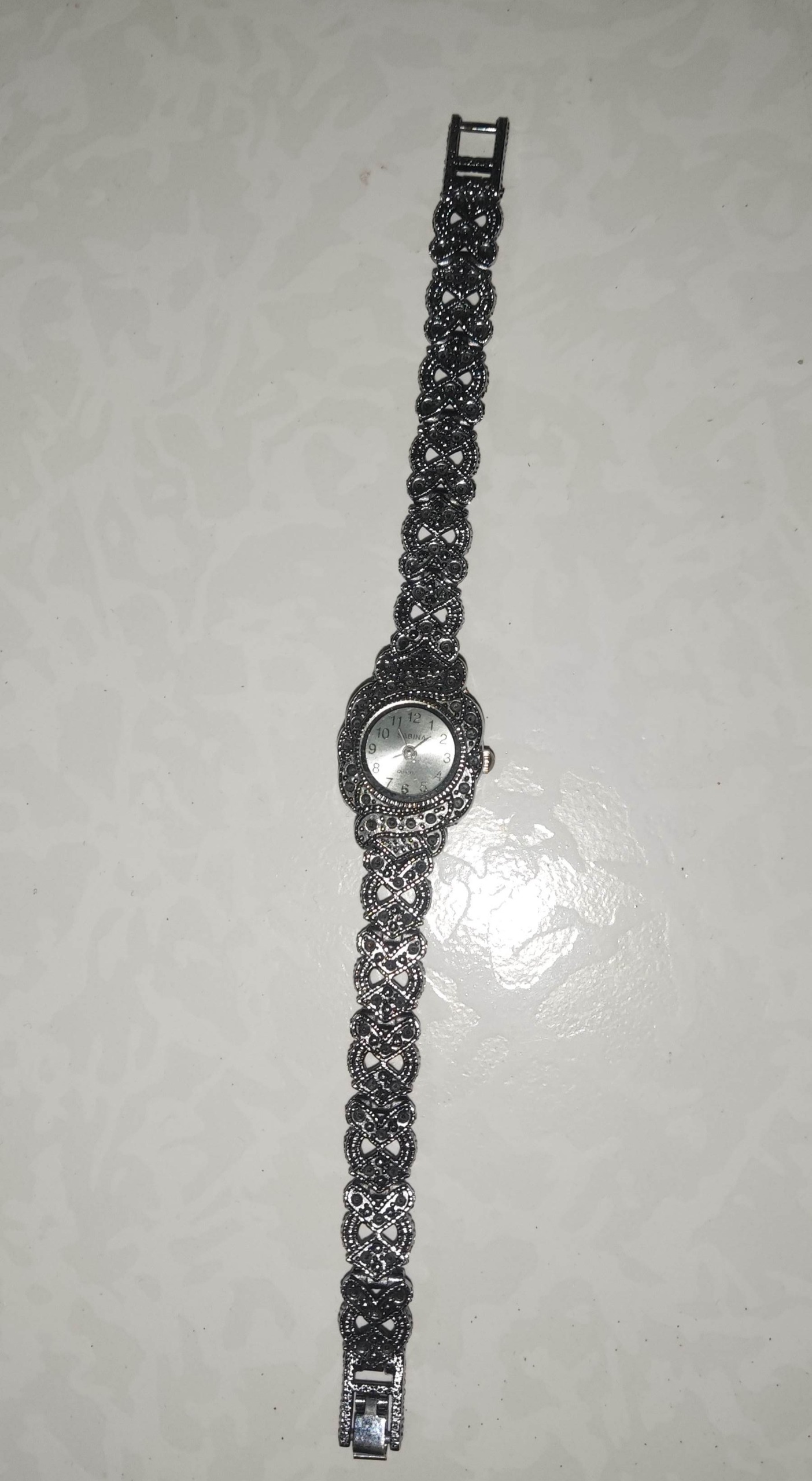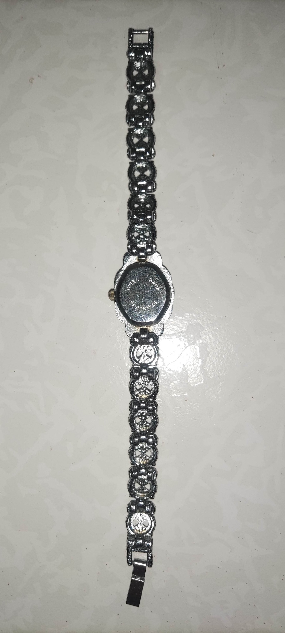 ساعت زنانه طرح بند نقره جنس بدل خود ساعت کار نمیکند ،شاید با یک باتری کار کند ،