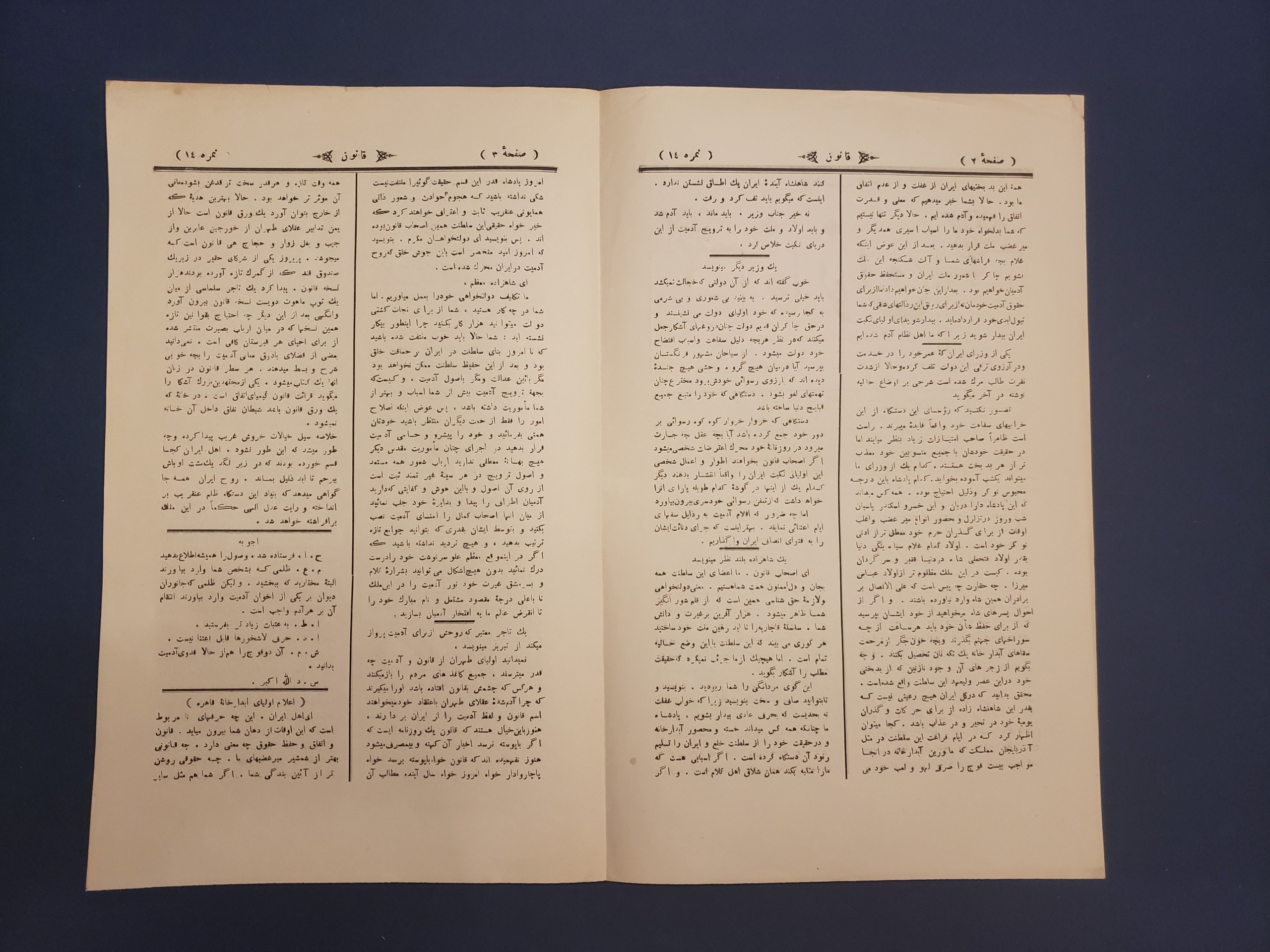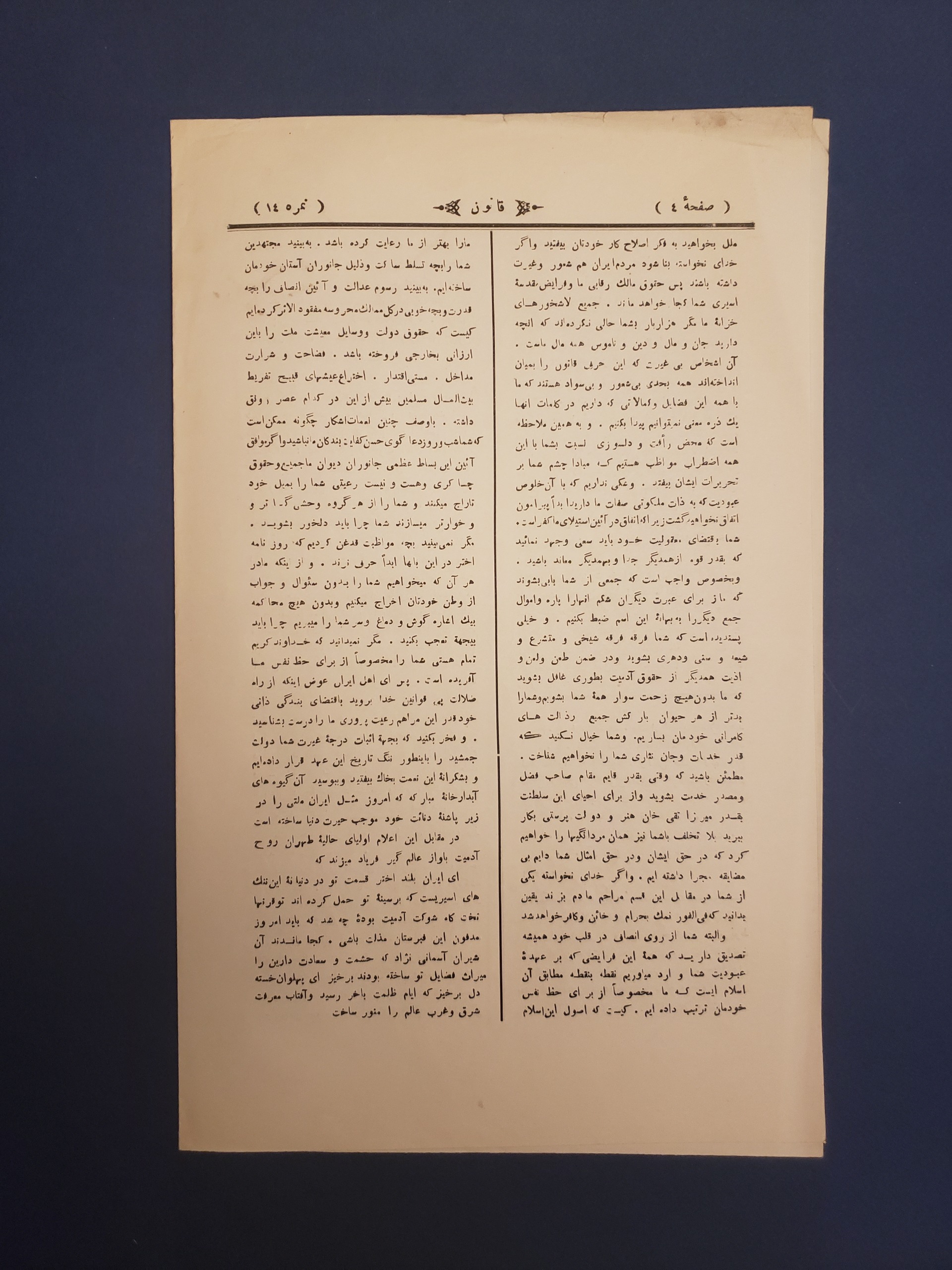 روزنامه نایاب قاجاری قانون 4صفحه