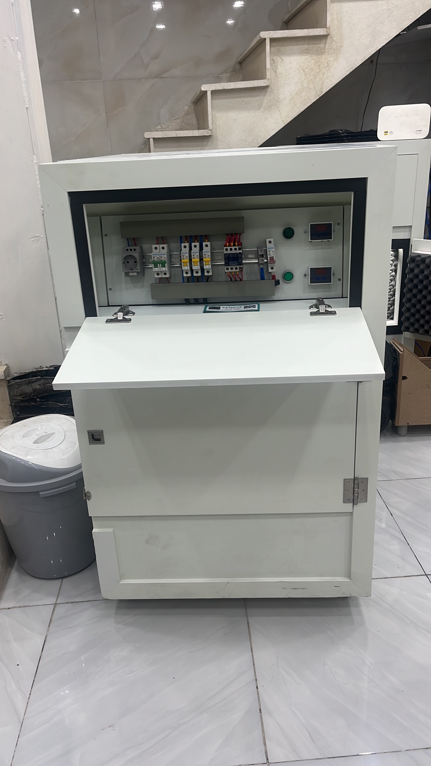 سیم های استفاده شده در تابلو برق تماما مس با روکش ضدحریق _ سیستم کنترل هوشمند دمای محیط گرم خانه ـ فیوز برق ورودی تابلو _ کلید استارت استپ کل مدار _ چراغ های سیگنال ولتاژ و آمپر (در مدار 3فاز 3عدد) _ کنترل فاز(در مدار 3فاز) _ کنتاکتور _ دستگاه کنترل دما هوشمند
