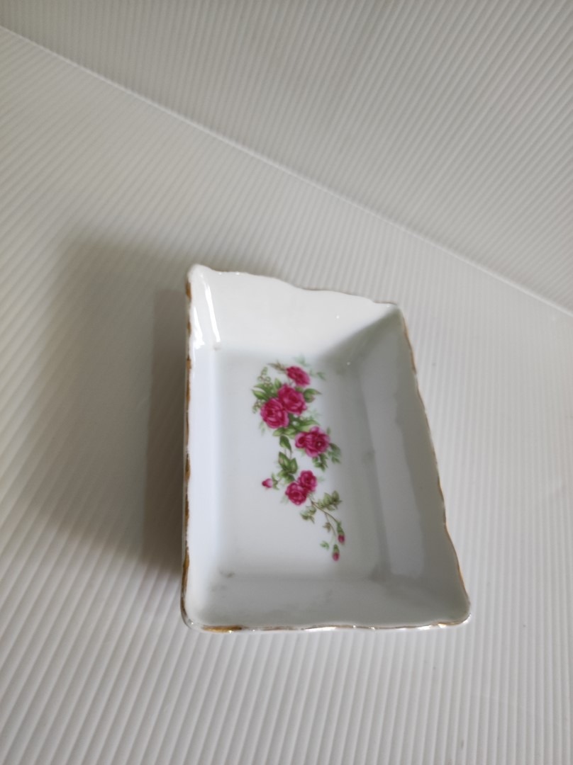کره خوری چینی مرجان قدیمی طرح گلسرخی آنتیک