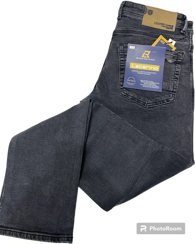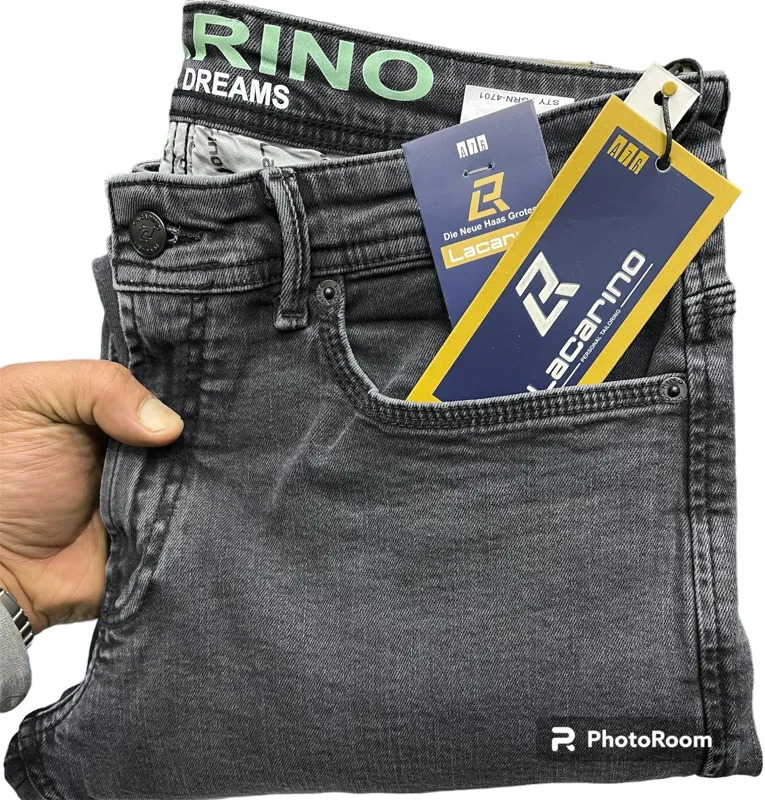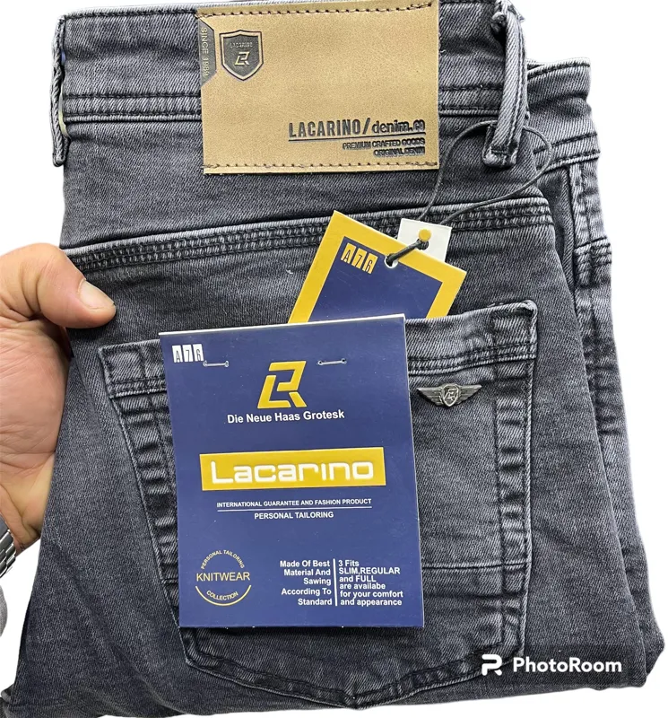 شلوار لی راسته فاق آزاد زیپ خور و دم پا راسته رنگ خاکستری تیره برند لاکارینو کاری بسیار عالی و بدون هیچ گونه رنگ دهی دارای تن خور عالی و مخصوص آقایون شیک پوش