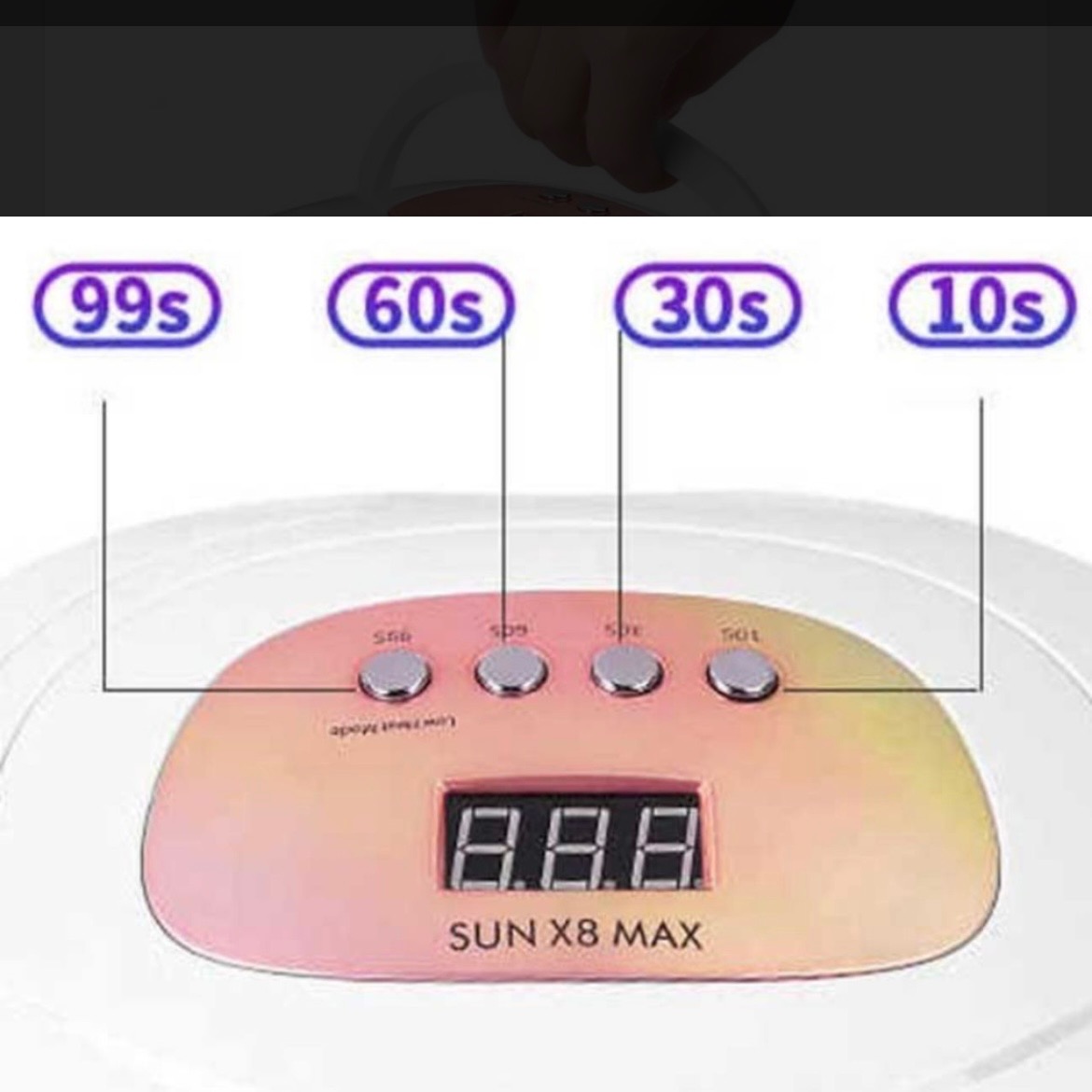 دستگاه های UV مثل یووی سان X8 MAX وسیله ایست که امواج ماوراء بنفش(Ultraviolet)تولید میکند و در اکثر سالنهای مراقبت و زیبایی ناخن برای خشک کردن انواع لاک ژل ها استفاده می گردد.این مدل جدید با لامپ LED ، با ظاهری شیک و فن آوری بالا ، امنیت بالا و صرفه جویی در انرژی لامپ بوسیله لامپ های LED و رنگ بندی متنوع و قابلیت تنظیم زمان برای راحتی بیشتر در هنگام انجام کاشت ناخن را داراست .