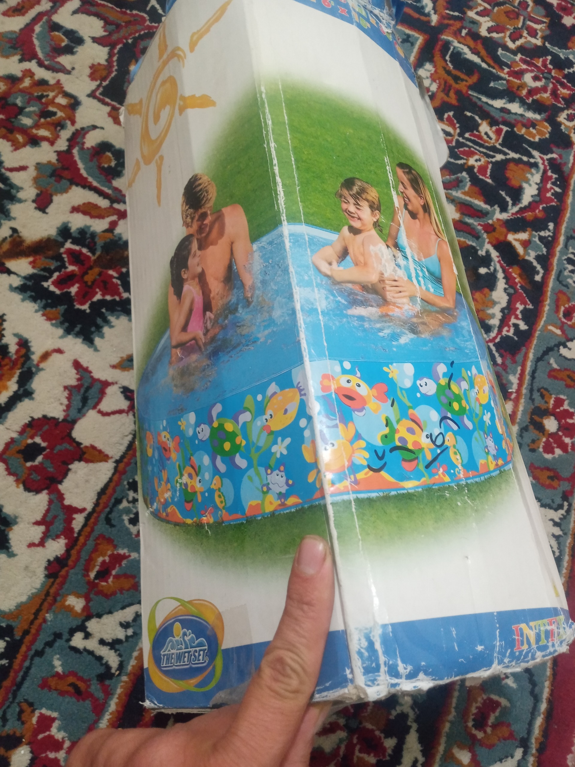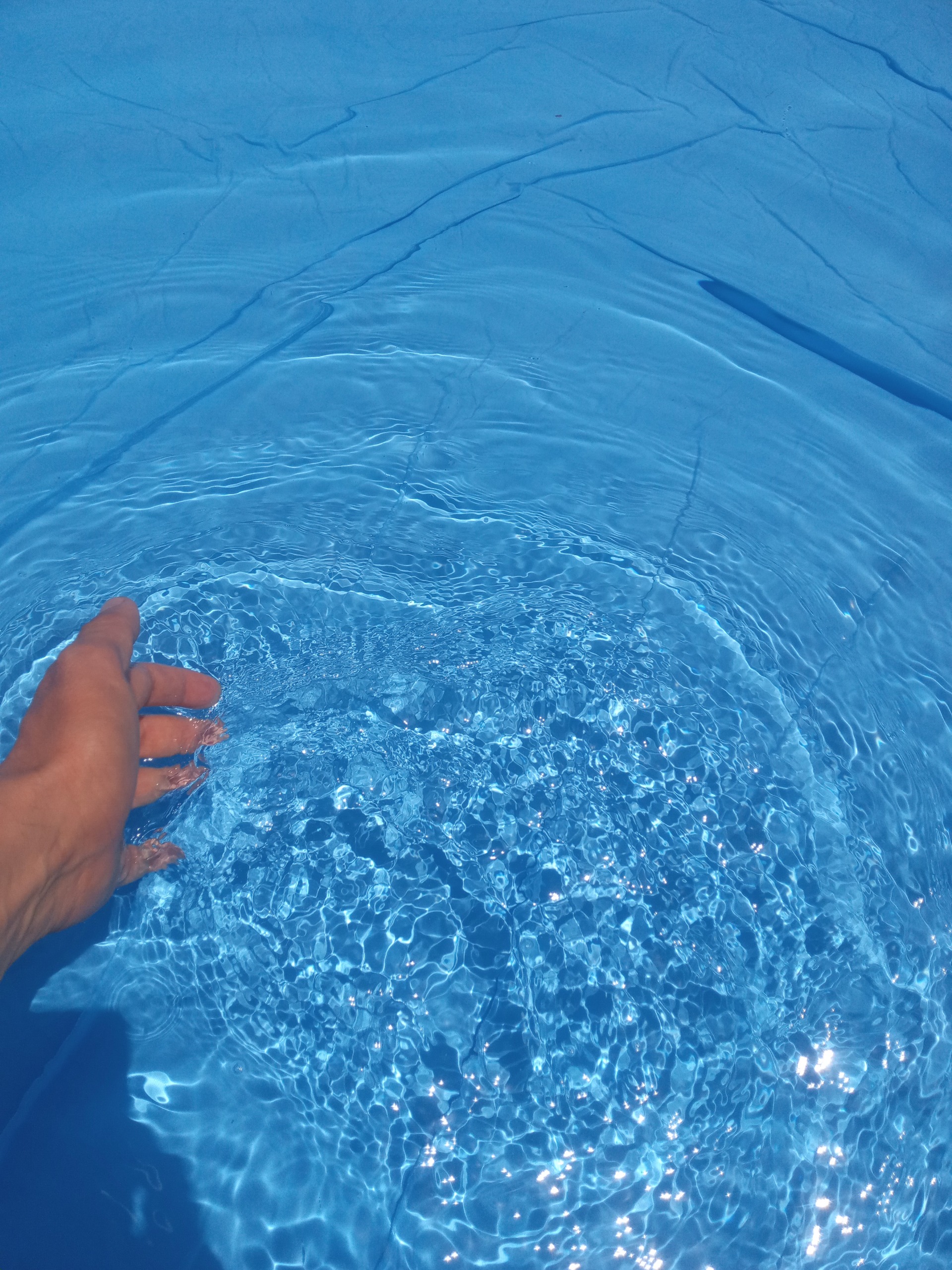 فقط همین یکبار آب پر کردم برا گرفتن عکس. اب پر نشده بود توش. 183سانتی متر قطر دایره استخره. 38سانت ارتفاعش..برای روزهای گرم تابستون، برا آب تنی بچه و بزرگ. موقع قطعی برق و تفریح. ماهی هم حتی میشه توش پرورش داد..