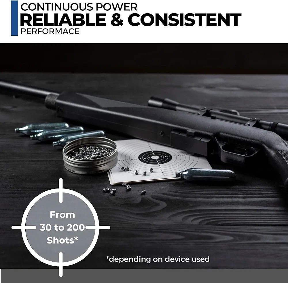 کپسول گاز 12 گرمی دی اکسید کربن بدون مارک، مناسب جهت انواع تپانچه های ورزشی و تفریحی، تفنگ ها و سایر لوازم بقا و شکار که با کپسول های استاندارد 12 گرمی تغذیه می شوند.