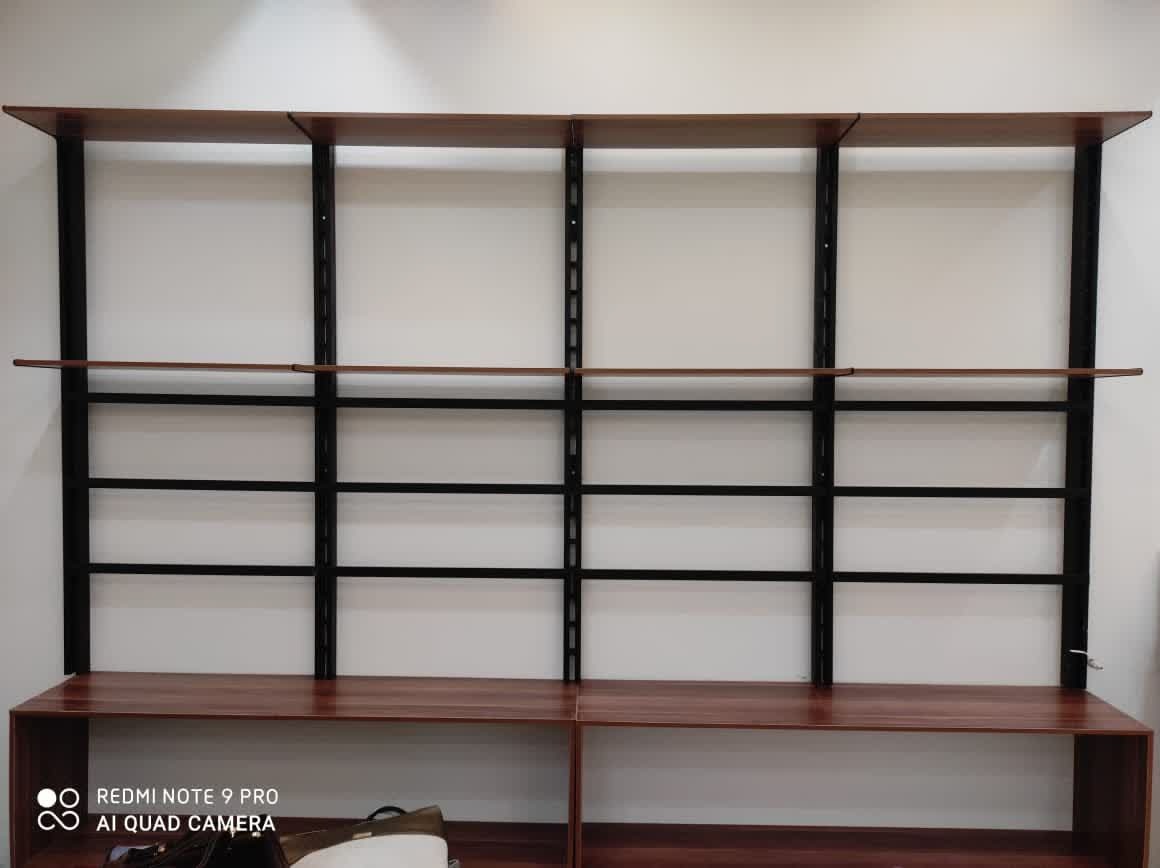 رگال ها برای فروشگاه 150 متری شرکتی همراه ام دی اف ها و میز ها رنگ کوره ای زد خش مشکی وکاملا سالم بدون عیب