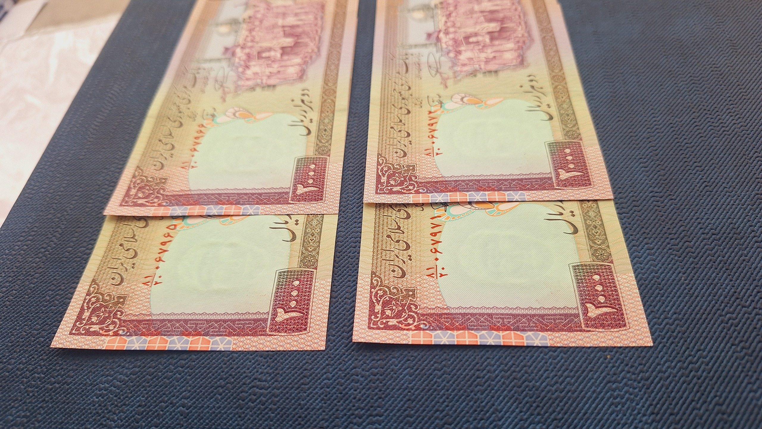 دو جفت اسکناس تظاهراتی با امضاء نمازی، نوربخش (نخ نستعلیق) و فیلیگران فهمیده