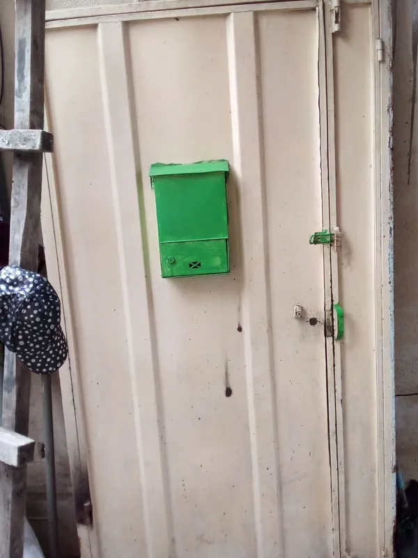 درب آهنی سالم و کاربردی دو لنگه همراه صندوق پست مخصوص و چهارچوب آهنی فوق العاده با ابعاد 2 متر و 20 سانت در 110 سانتی متر