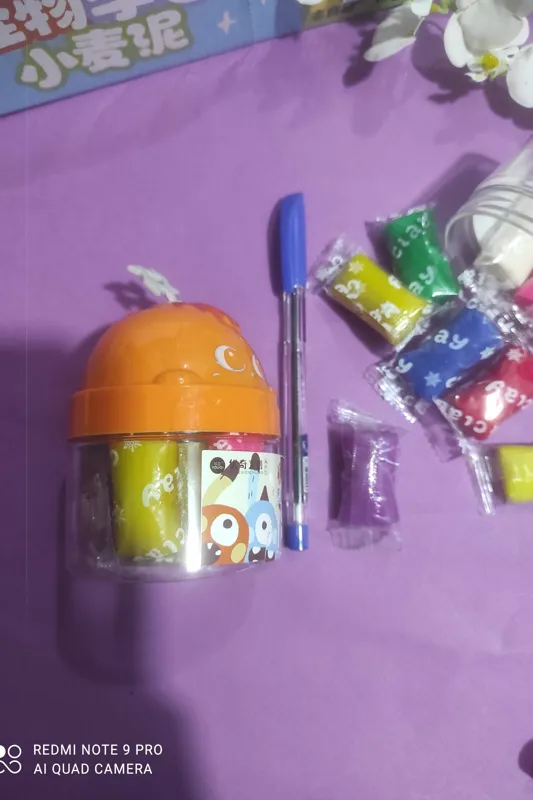 خمیر بازی سطلی کوچک .8تکه خمیر رنگی و چهار قطعه مطابق تصویر