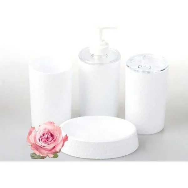 - 4 تکه اصلی : جا مسواک و خمیردندان ، جای مایع دستشویی پمپی ، جا صابونی و لیوان آب
