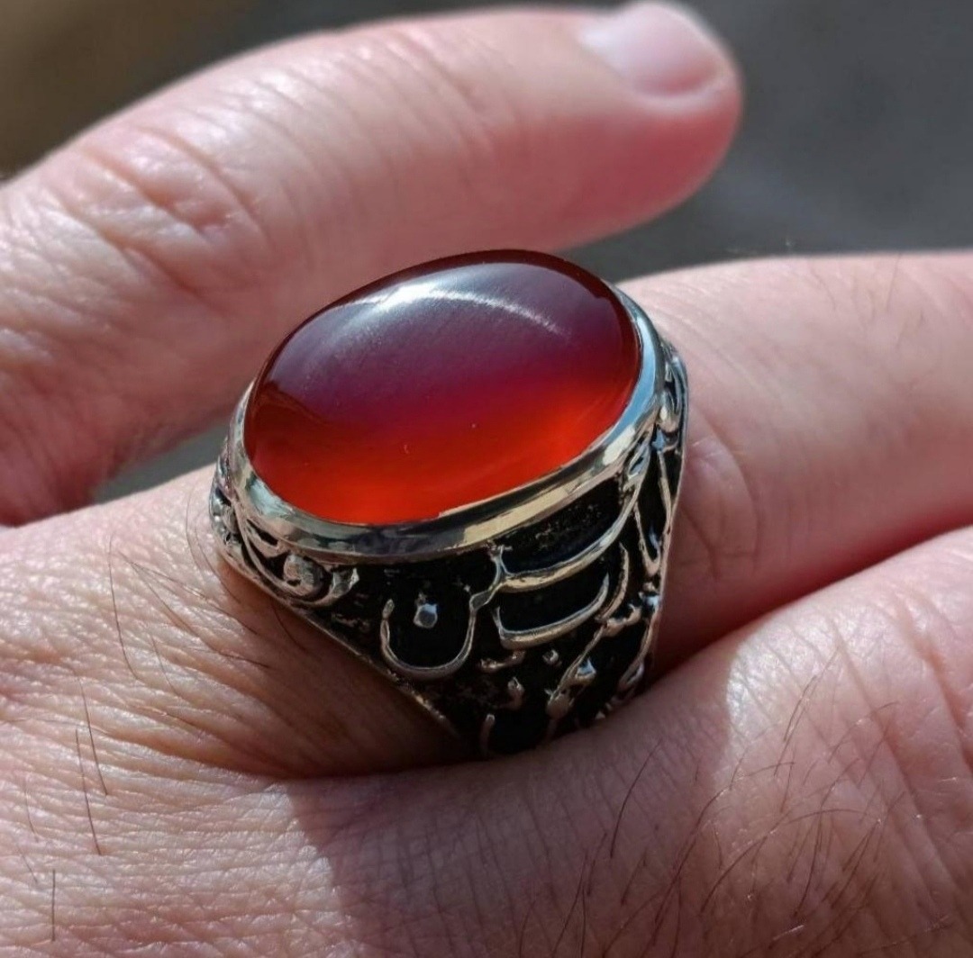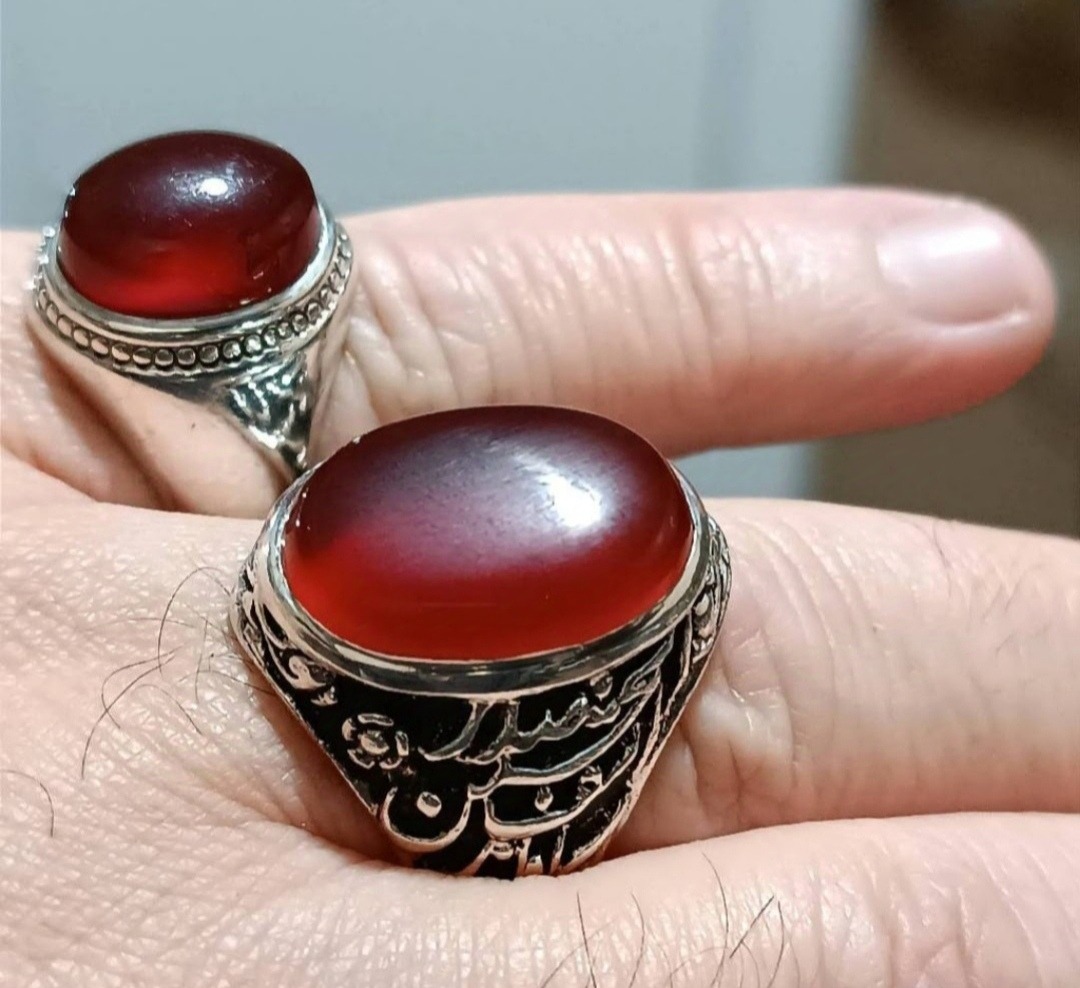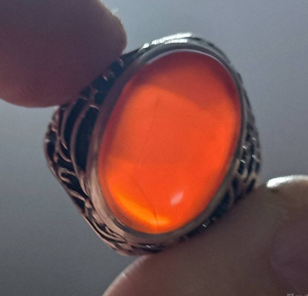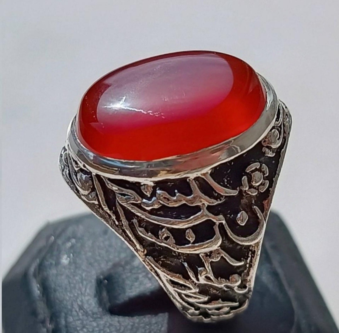 عقیق سرخ طبیعی لامپی فوق آبدار ( رکاب نقره)