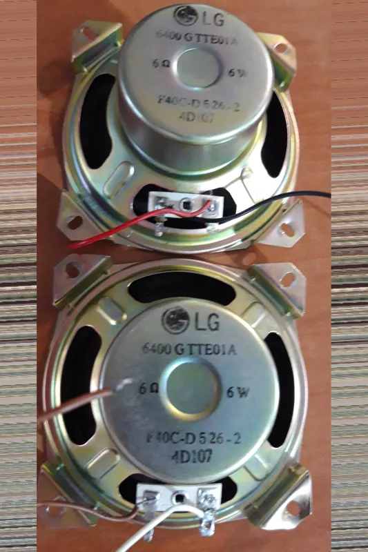 یک جفت بلندگو 4 اینچ برند LG اصل کره با کیفت عالی و درجه 1 کاملا سالم اورجینال مربوط به ضبطهای LG ساخت کره میباشد بدون پوسدگی و خط خش مثل نو