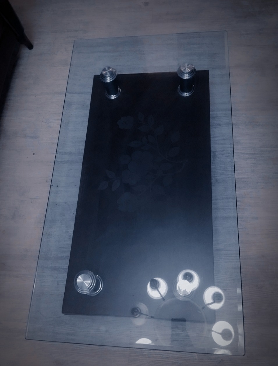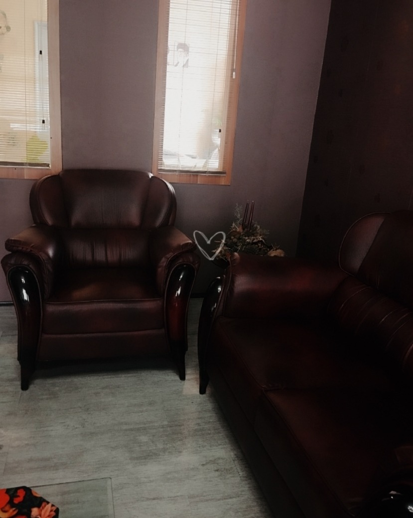 مبلمان 9 نفره چوب روس و چرم کاملا سالم بدون پارگی و خط و خش + میز وسط پایه چرم و فلز ست + دو عدد کنار مبلی شیشه و فلز