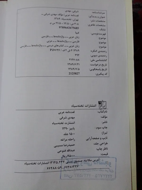 کتاب واژه نامه ی عربی کنکور (مهدی شرفی-چاپ سوم)