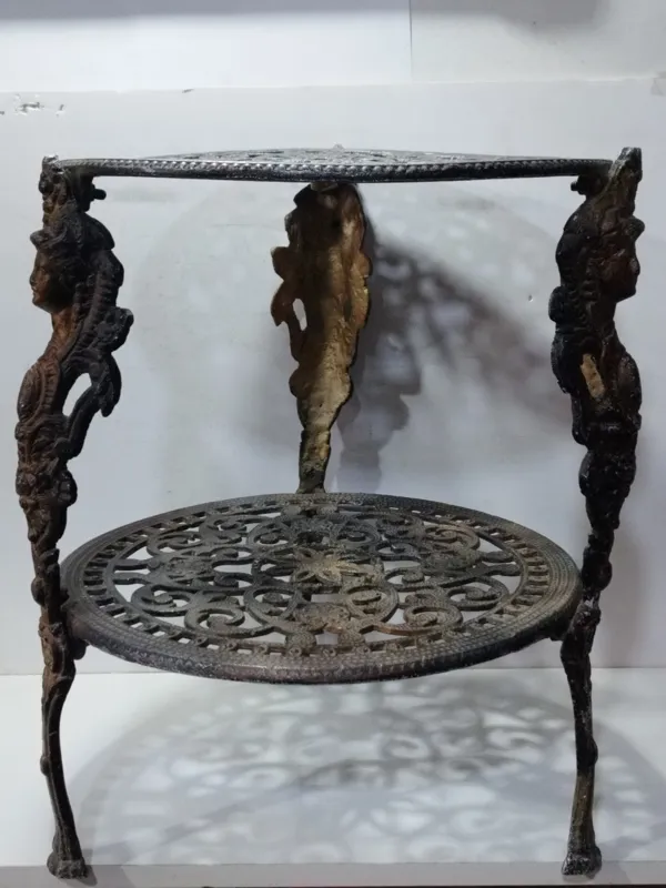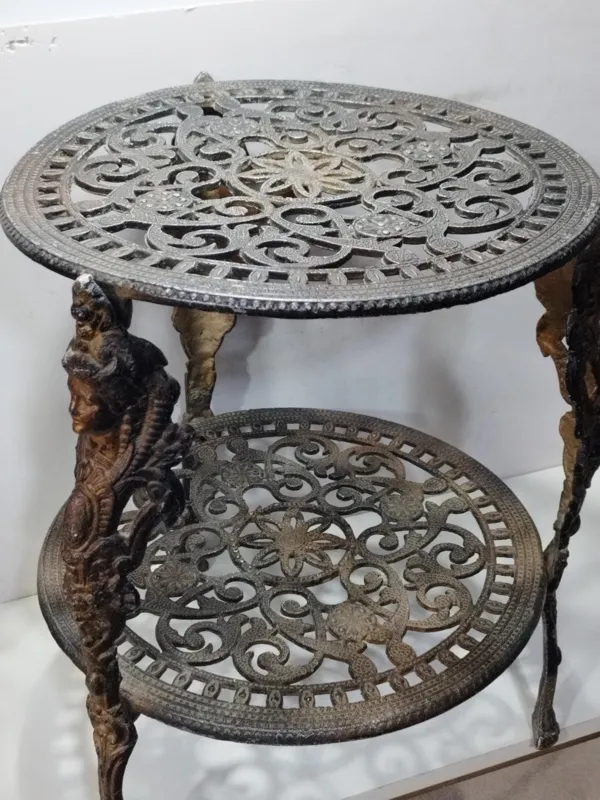 میز 2طبقه قدیمی با پایههای فرشته و جنس قلع روی