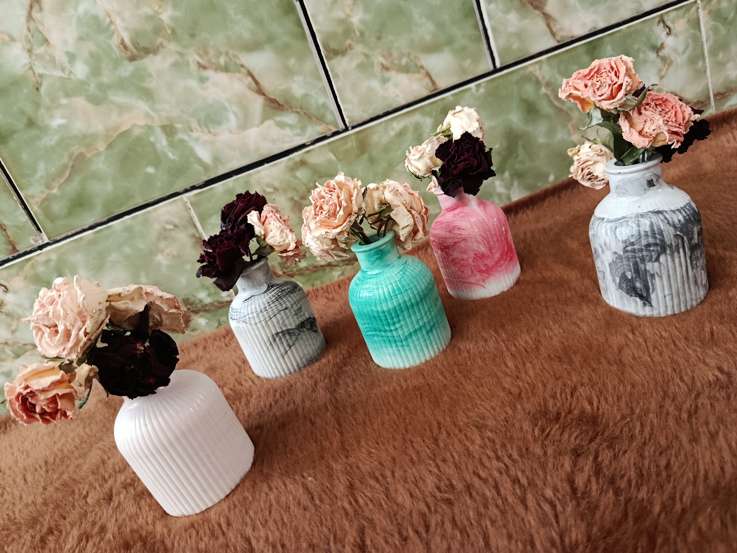 گلدان های مراکشی با ارتفاع ده سانت که با سنگ مصنوعی بصورت دست ساز ساخته شده ، کار شیک و زیبایی رو ساختیم تا بعنوان دکور منازل شما استفاده بشه.