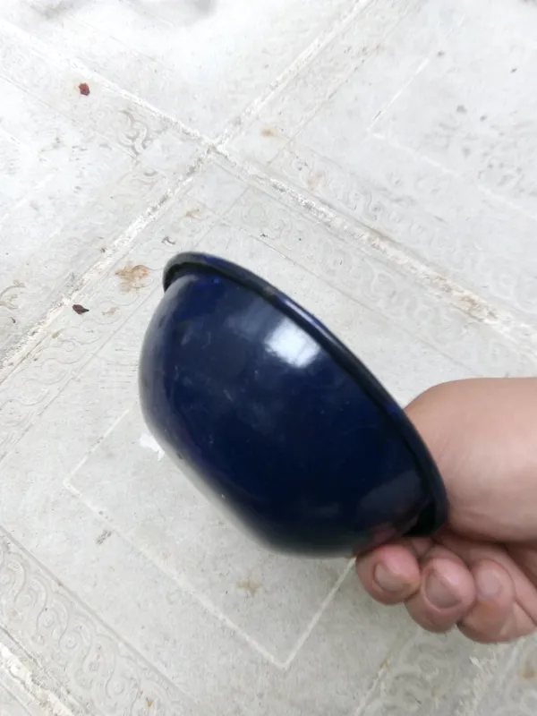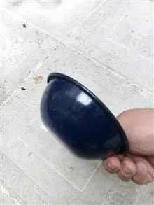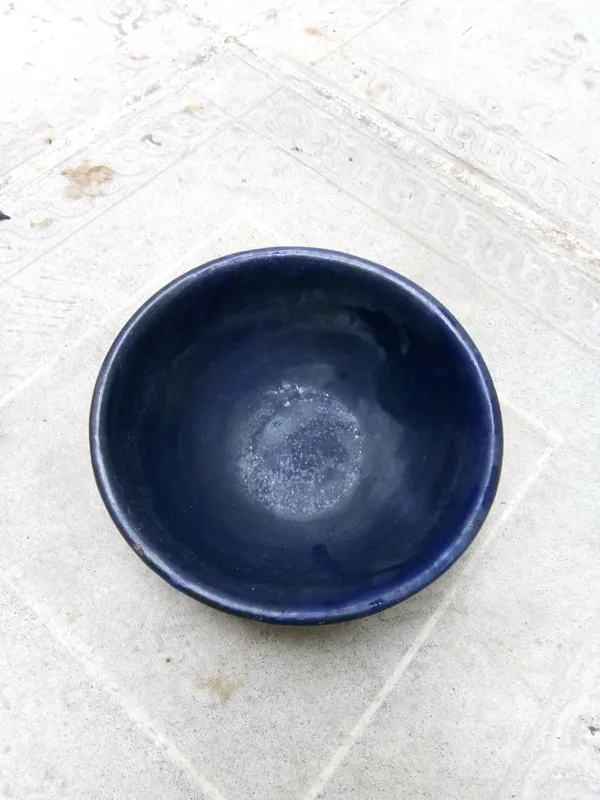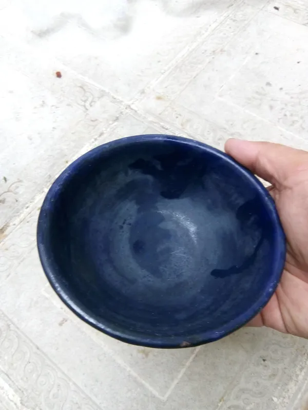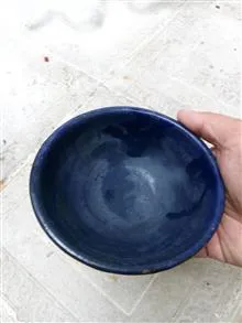 کاسه قدیمی لعابی رنگ سورمه ای کمیاب
