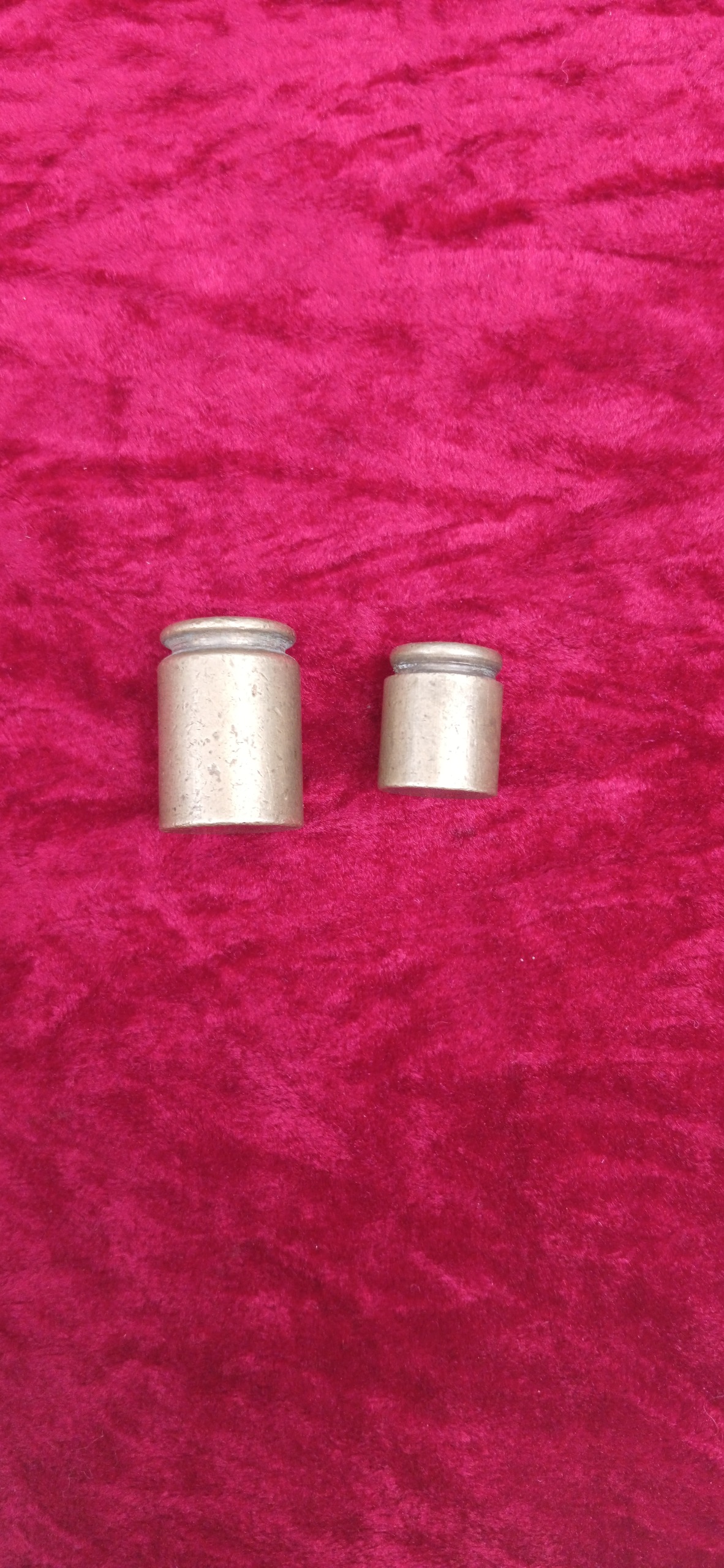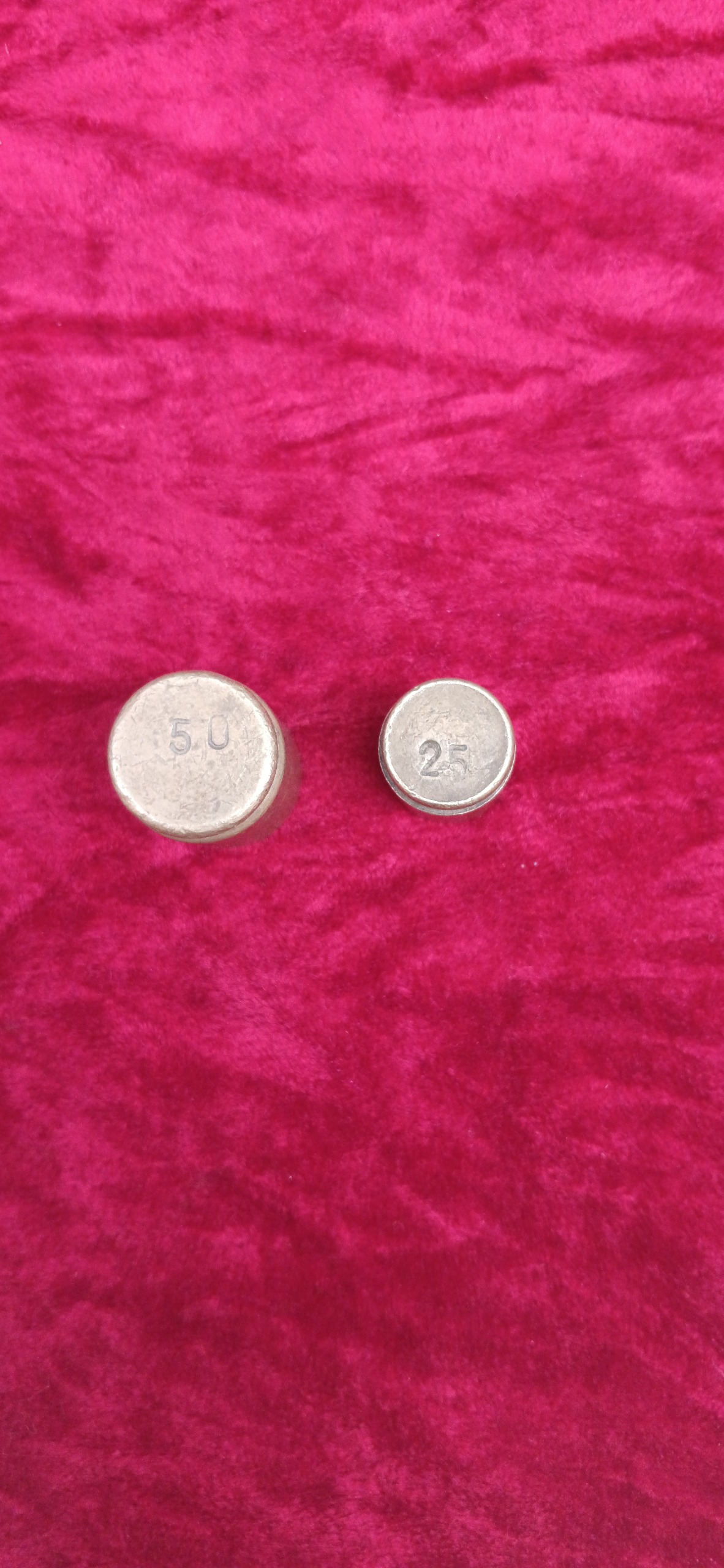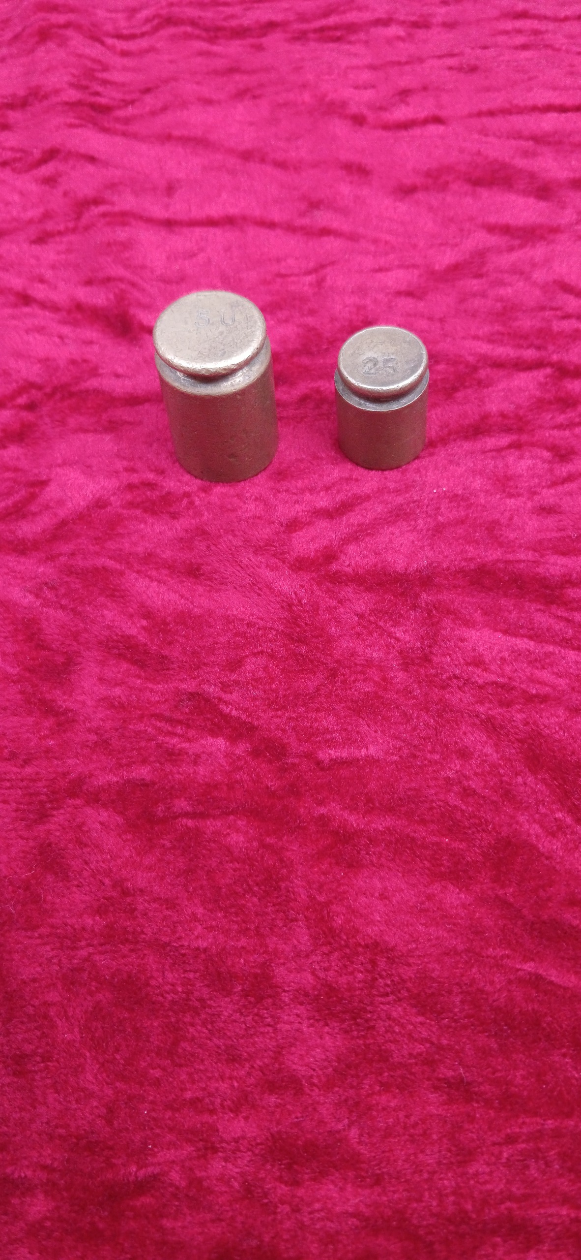 دو عدد وزنه برنجی قدیمی سالم و بدون ایراد قابل استفاده 50 و 25 گرمی.